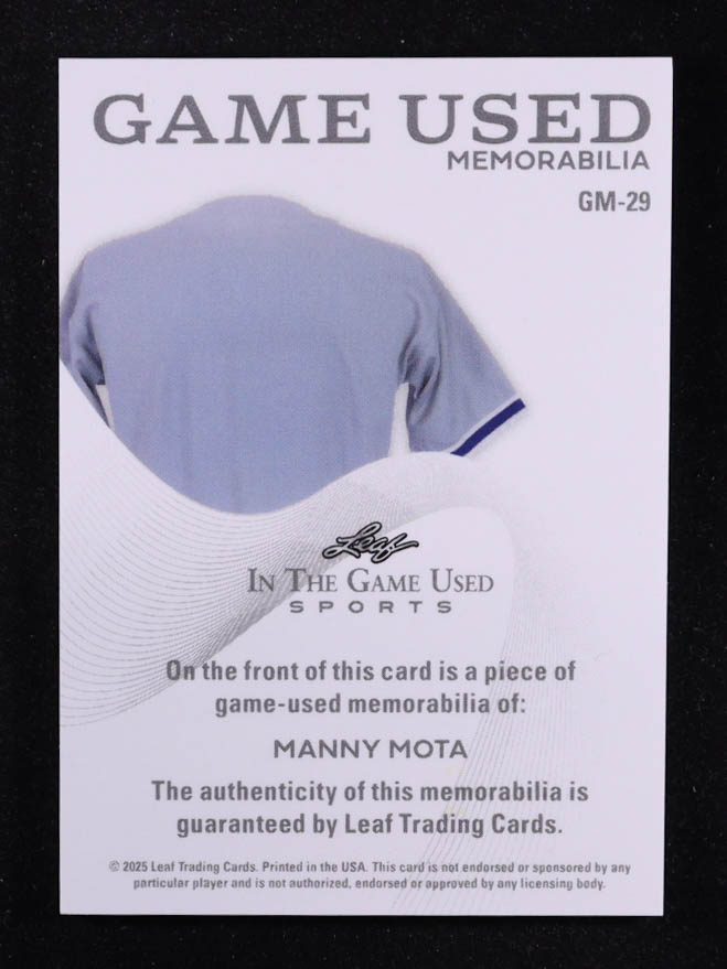 Manny Mota 2025 Leaf ITG Used Sports Game Used Memorabilia Blue Foil JSY #GM29 #16/65