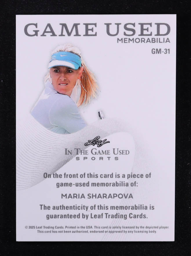 Maria Sharapova 2025 Leaf ITG Used Sports Game Used Memorabilia Blue Foil JSY #GM31 #6/45