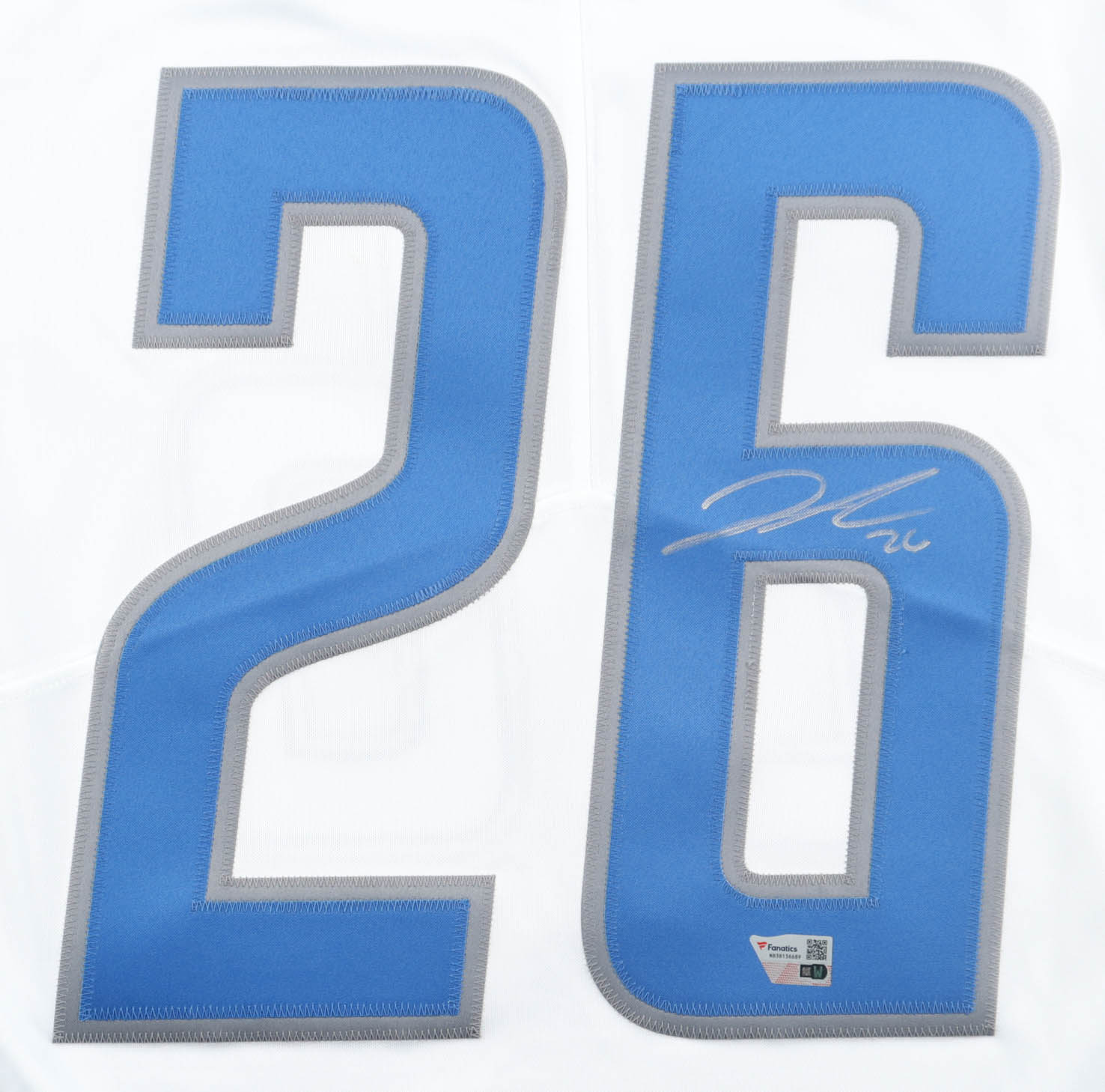 Nike authentic jersey with everything sewn on, size L. Hand-signed by Jahmyr Gibbs (Detroit Lions).