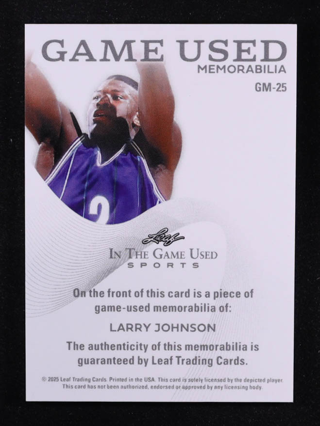 Larry Johnson 2025 Leaf ITG Used Sports Game Used Memorabilia Silver Sparkle Foil JSY #GM25 #15/20