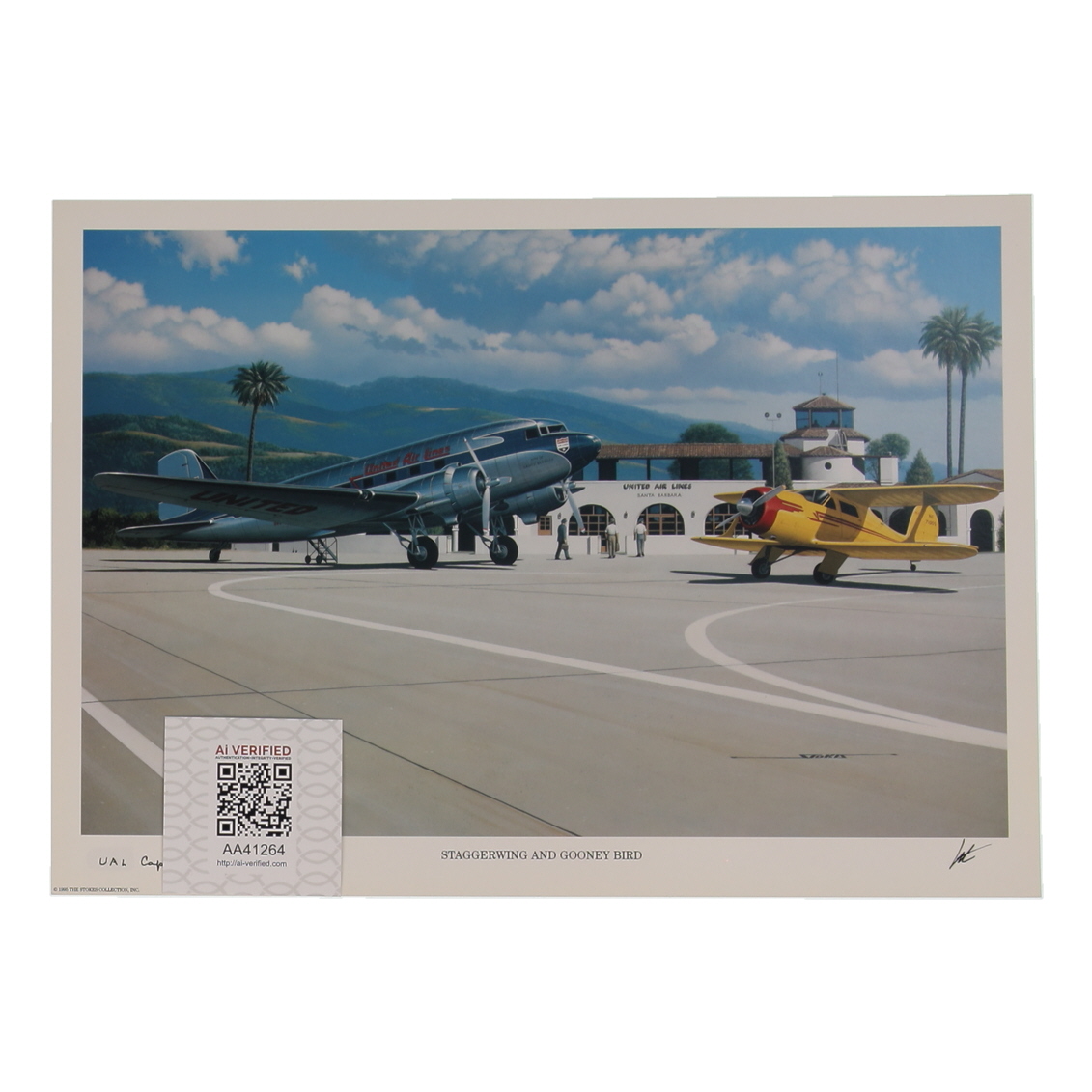 Carl E. Recknagel Signed Stan Stokes "Staggerwing And Gooney Bird" Lithograph Inscribed "UAL Captain" (AIV)