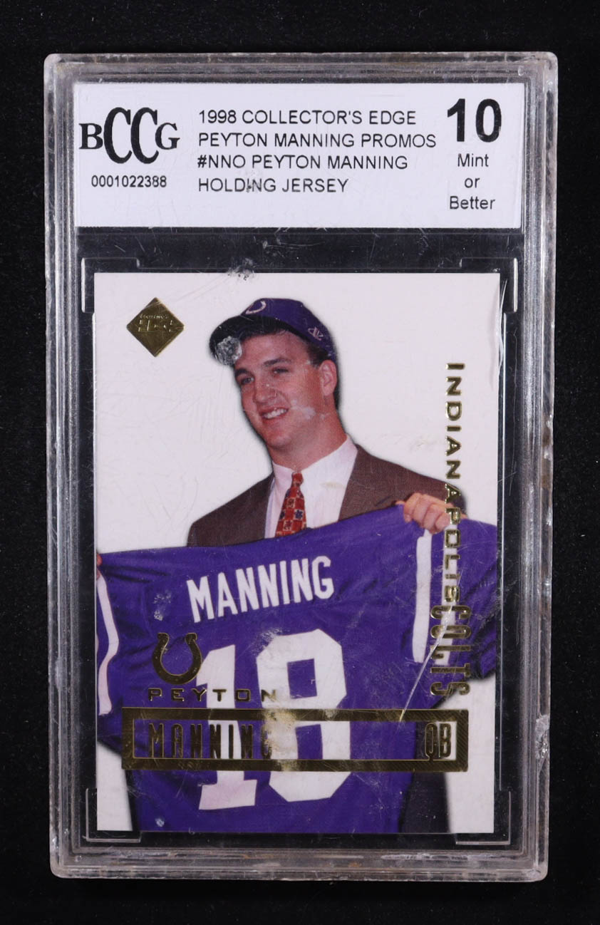 Peyton Manning 1998 Collector's Edge Peyton Manning Promos Holding Jersey #NNO RC (BCCG 10)