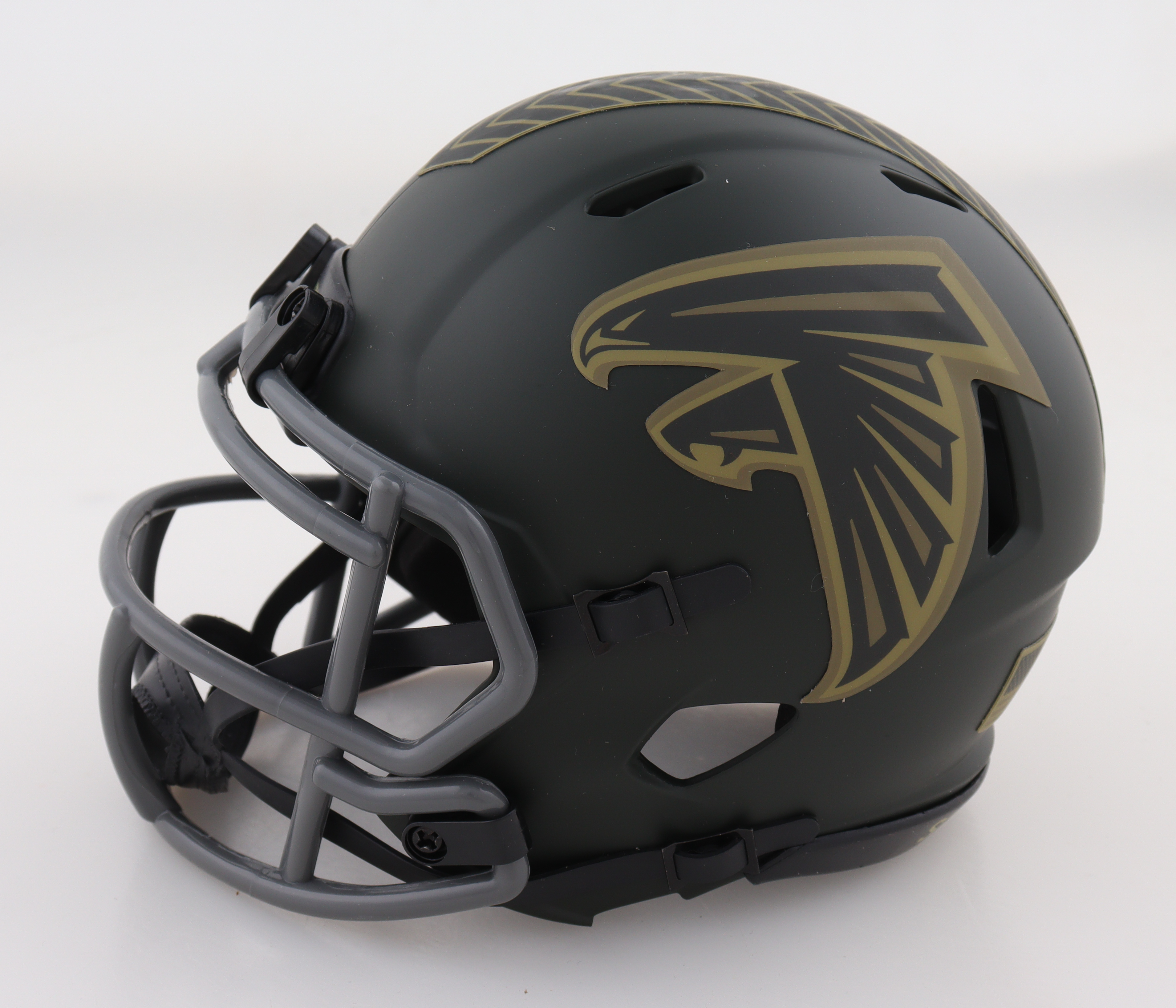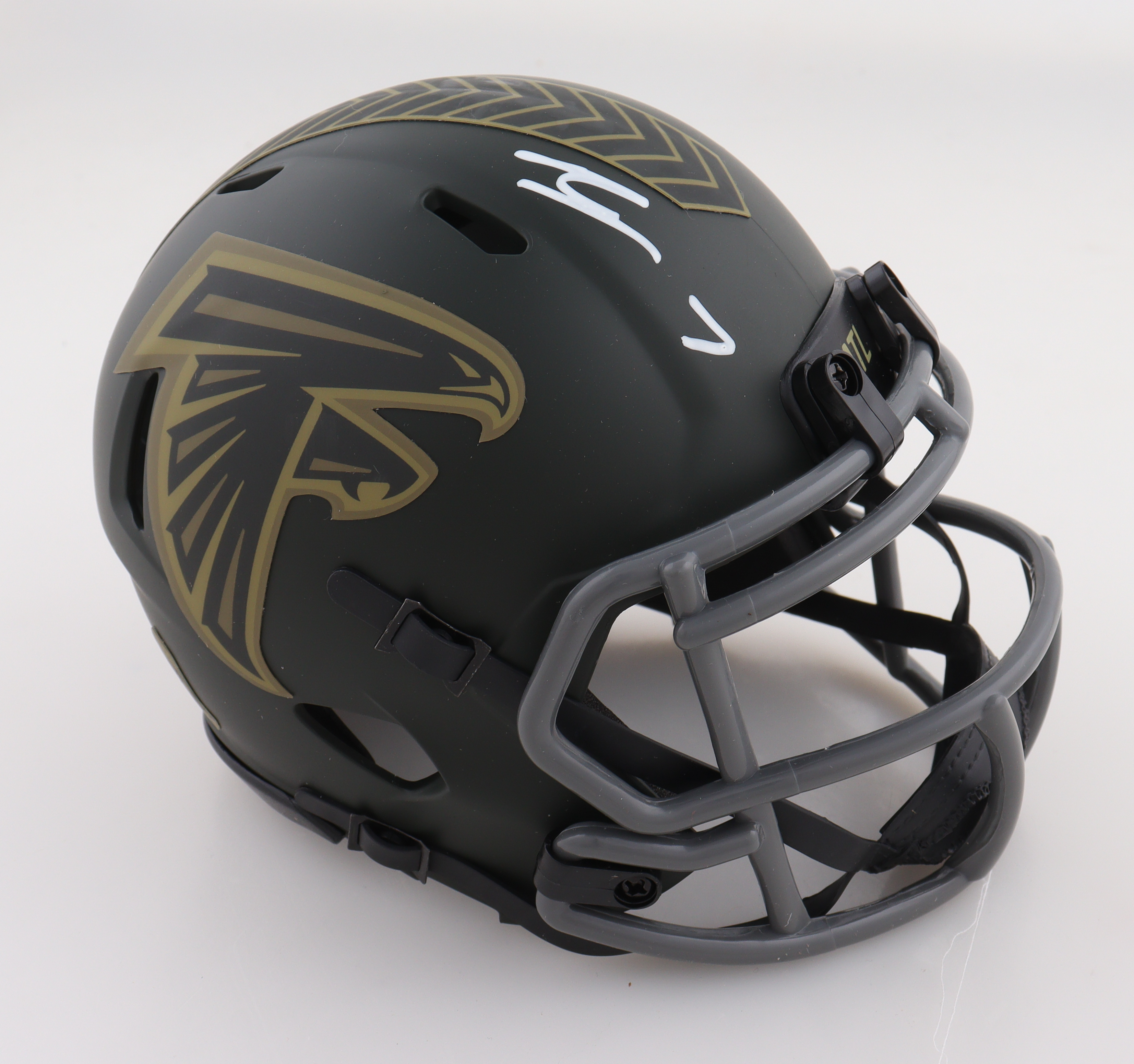 Riddell Atlanta Falcons Salute to Service Alternate Speed Mini Helmet. Hand-signed by Bijan Robinson.