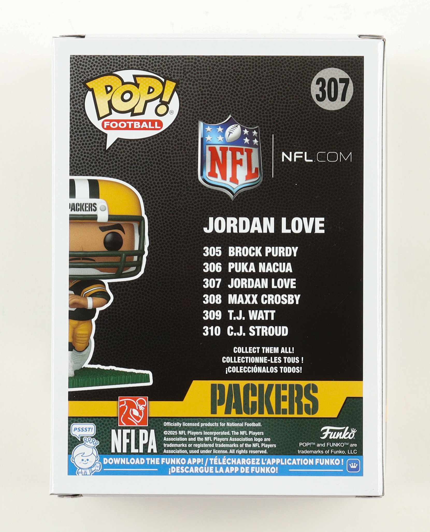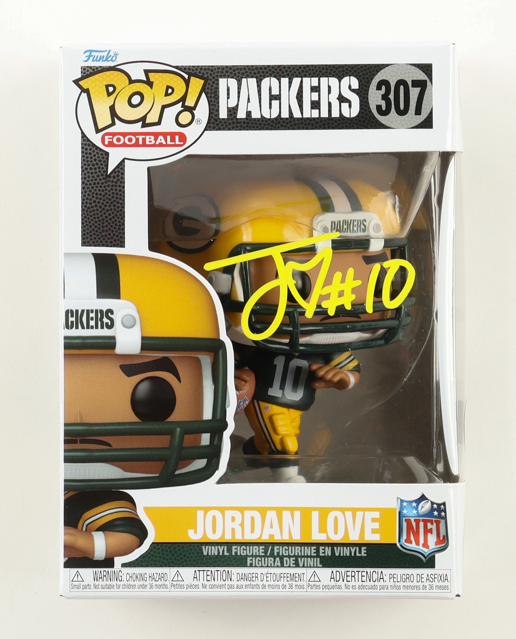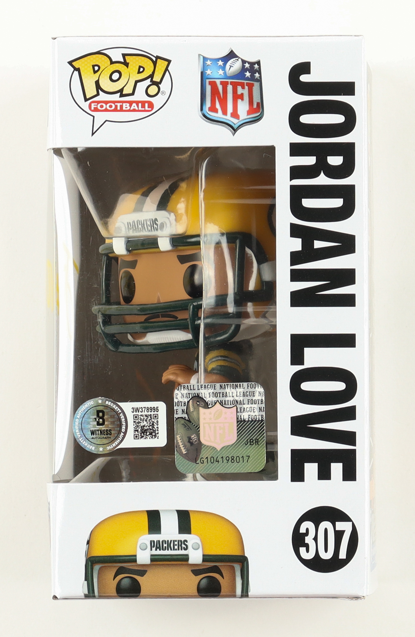Vinyl figure measures approximately 4" tall and has been hand-signed on the packaging by Jordan Love (Green Bay Packers).