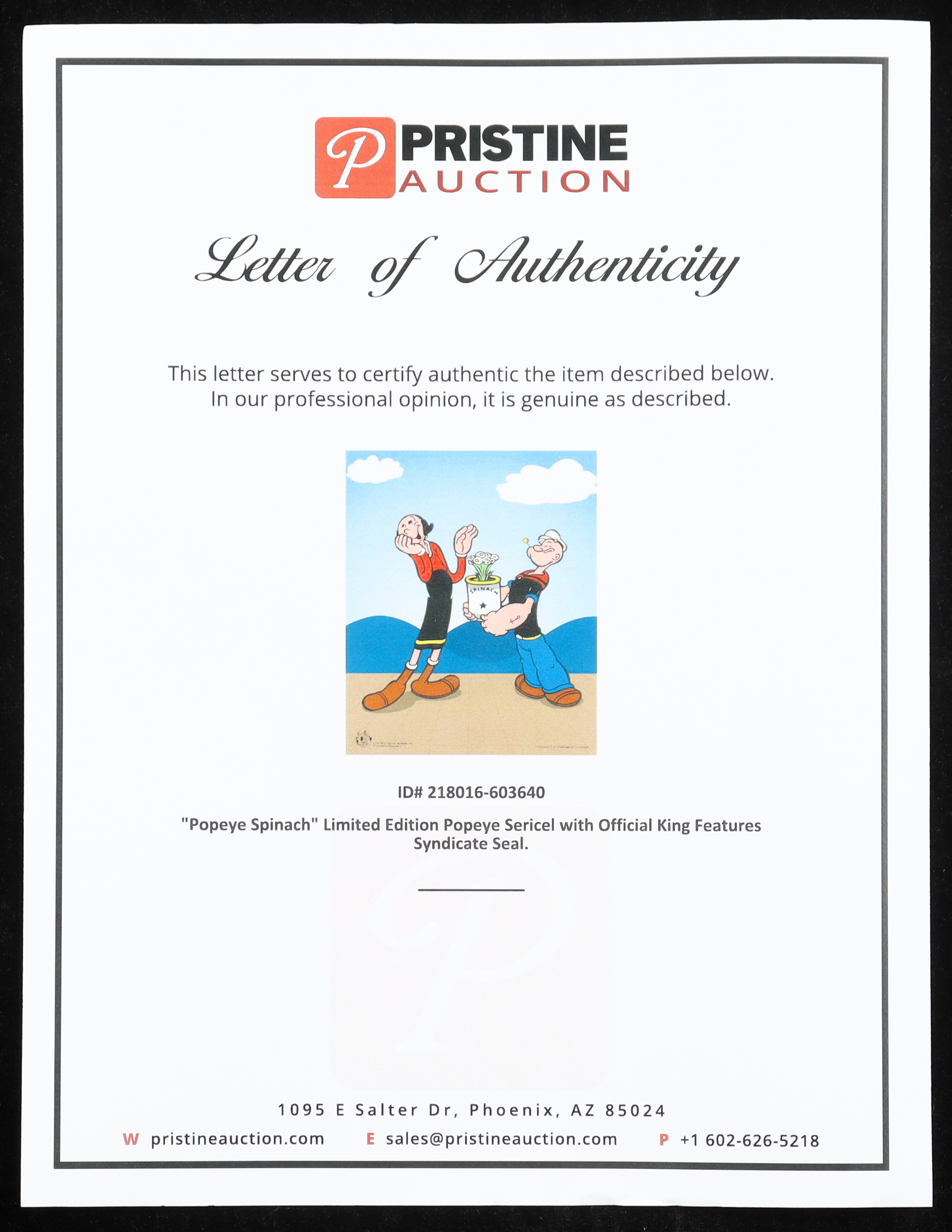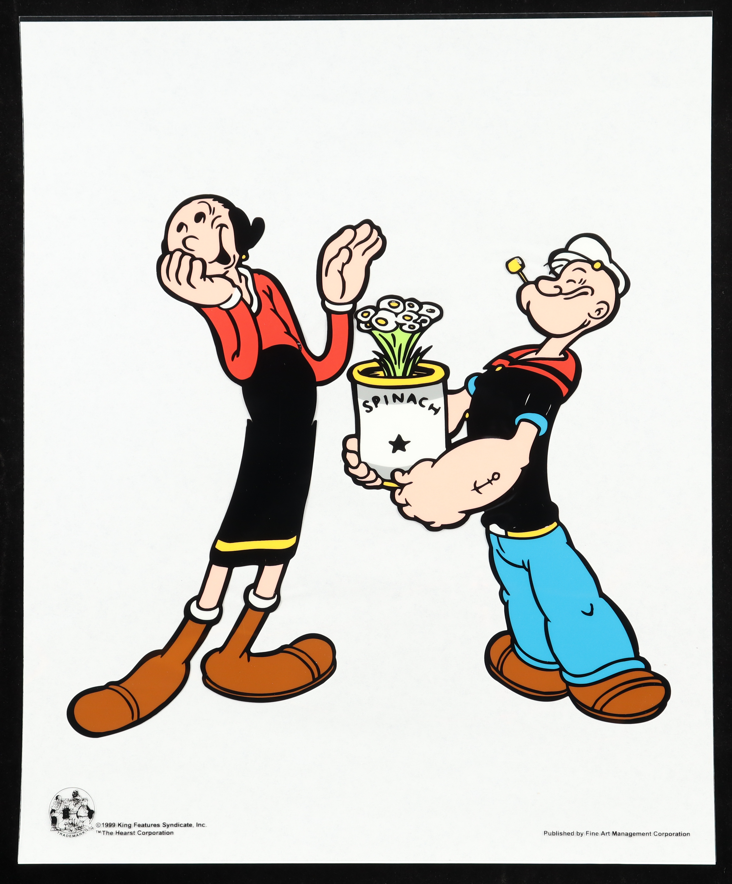 1999 King Features Syndicate "Popeye Spinach" Limited Edition Animation Sericel measures approximately 13.5" x 16.5" in size. Please note, the item is unsigned and has been rolled. please refer to photos regarding the condition of the item.