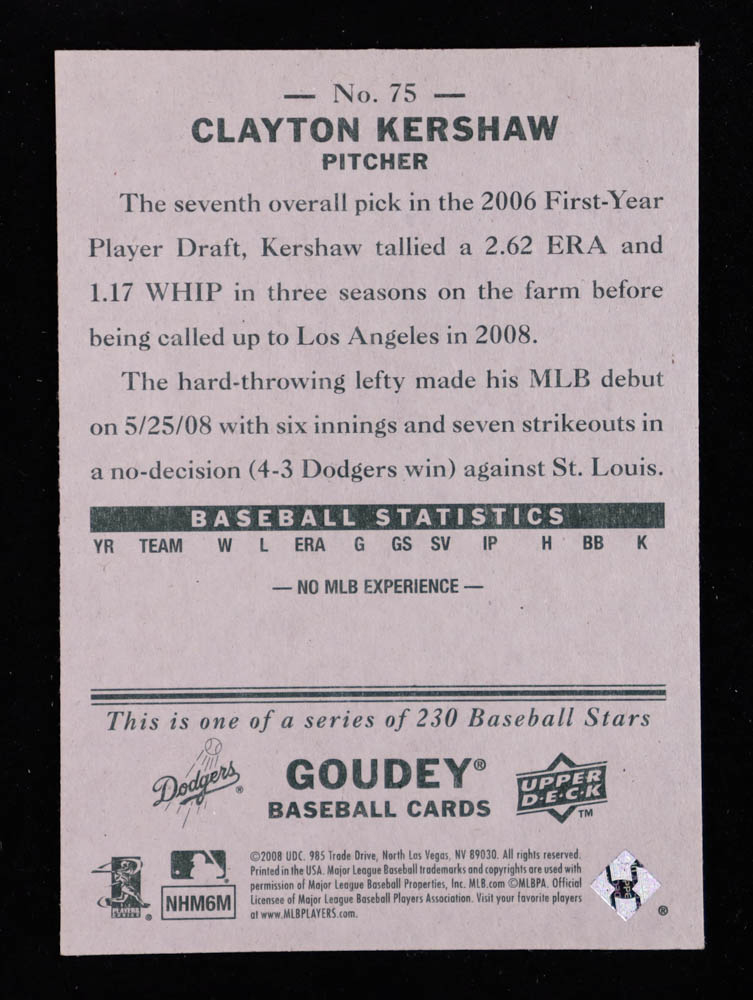 Clayton Kershaw 2008 Upper Deck Goudey #75 RC