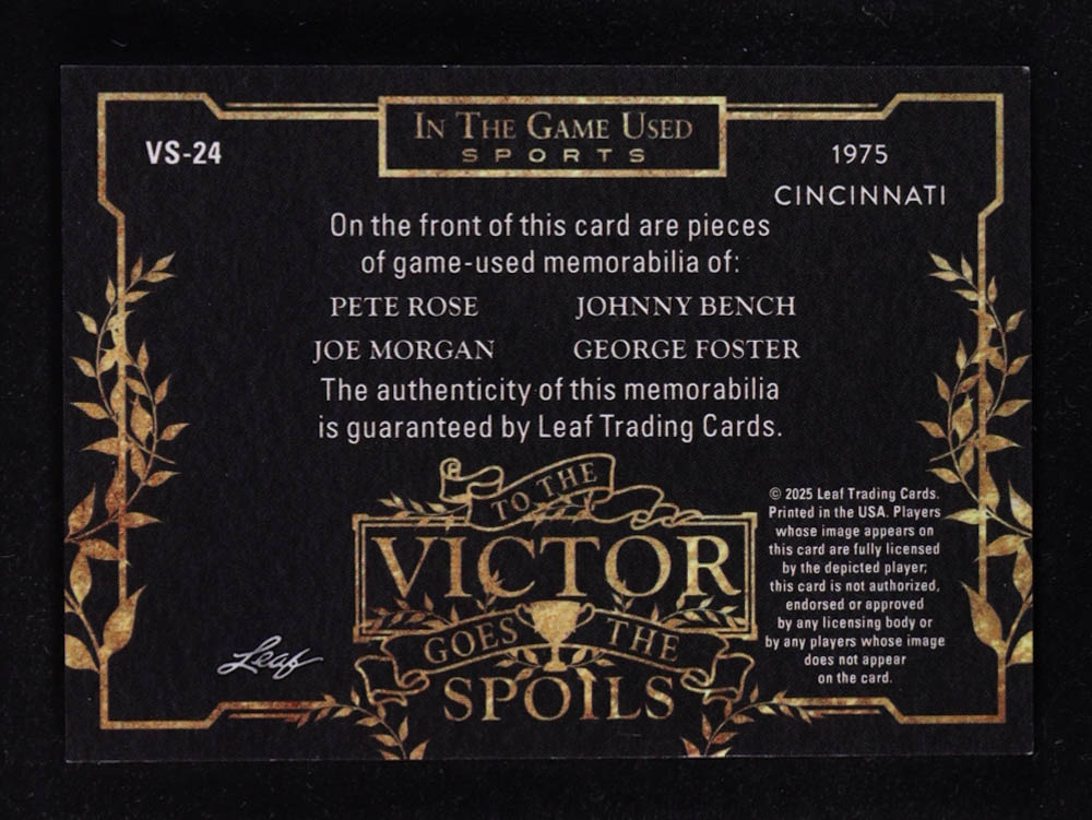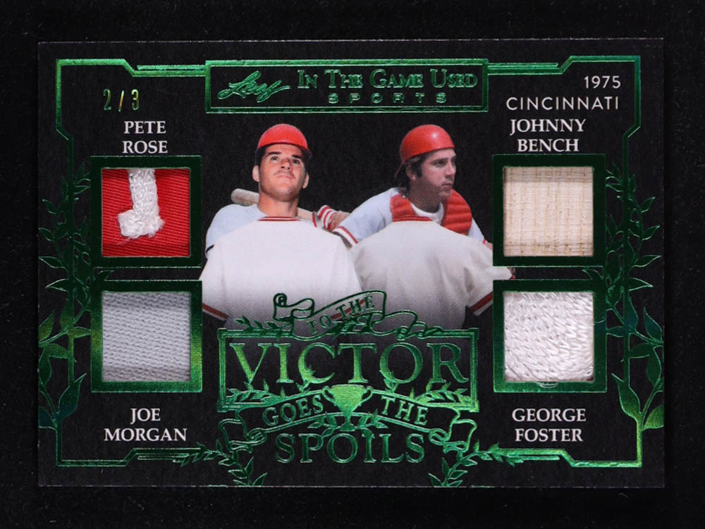 Pete Rose / Johnny Bench / Joe Morgan / George Foster 2025 Leaf ITG Used Sports To the Victor Goes the Spoils Green #VS24 #2/3