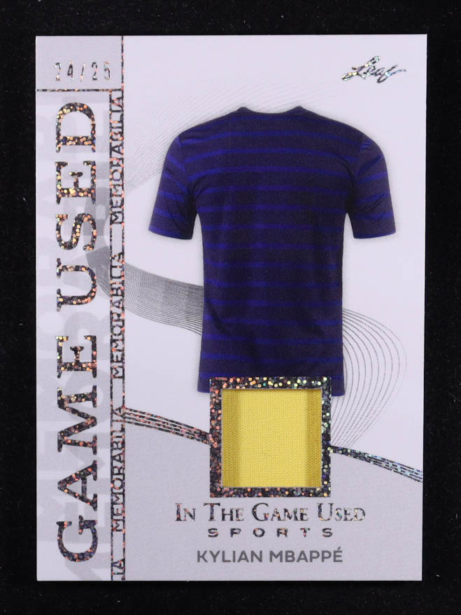 Kylian Mbappe 2025 Leaf ITG Used Sports Game Used Memorabilia Silver Sparkle Foil JSY #GM23 #24/25