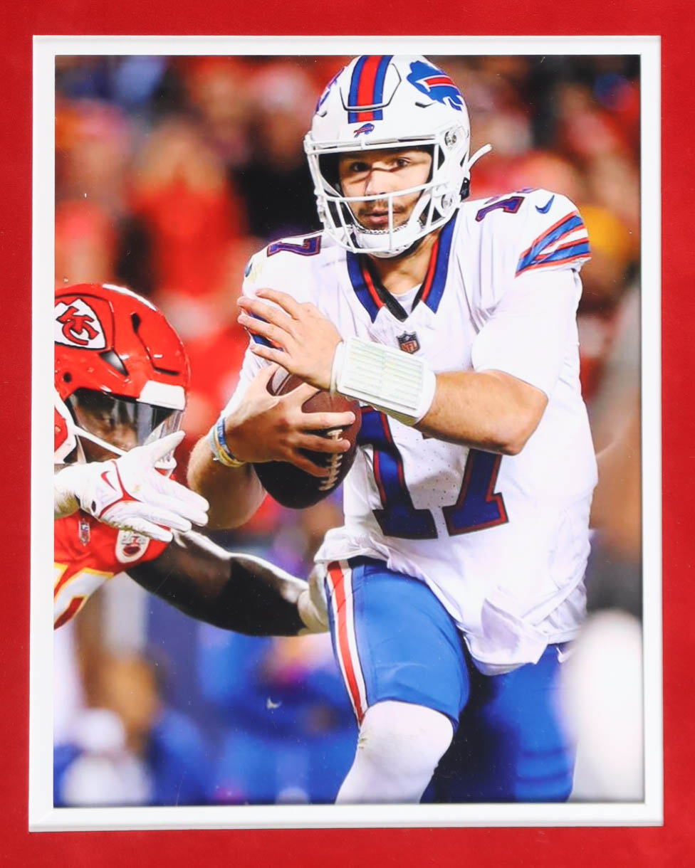 Custom frame display measures approximately 34.5" x 42.5" in size and features a jersey that has been hand-signed by Josh Allen (Buffalo Bills). The display also includes an 8" x 10" photo as well. Please refer to photos regarding the condition of the item.