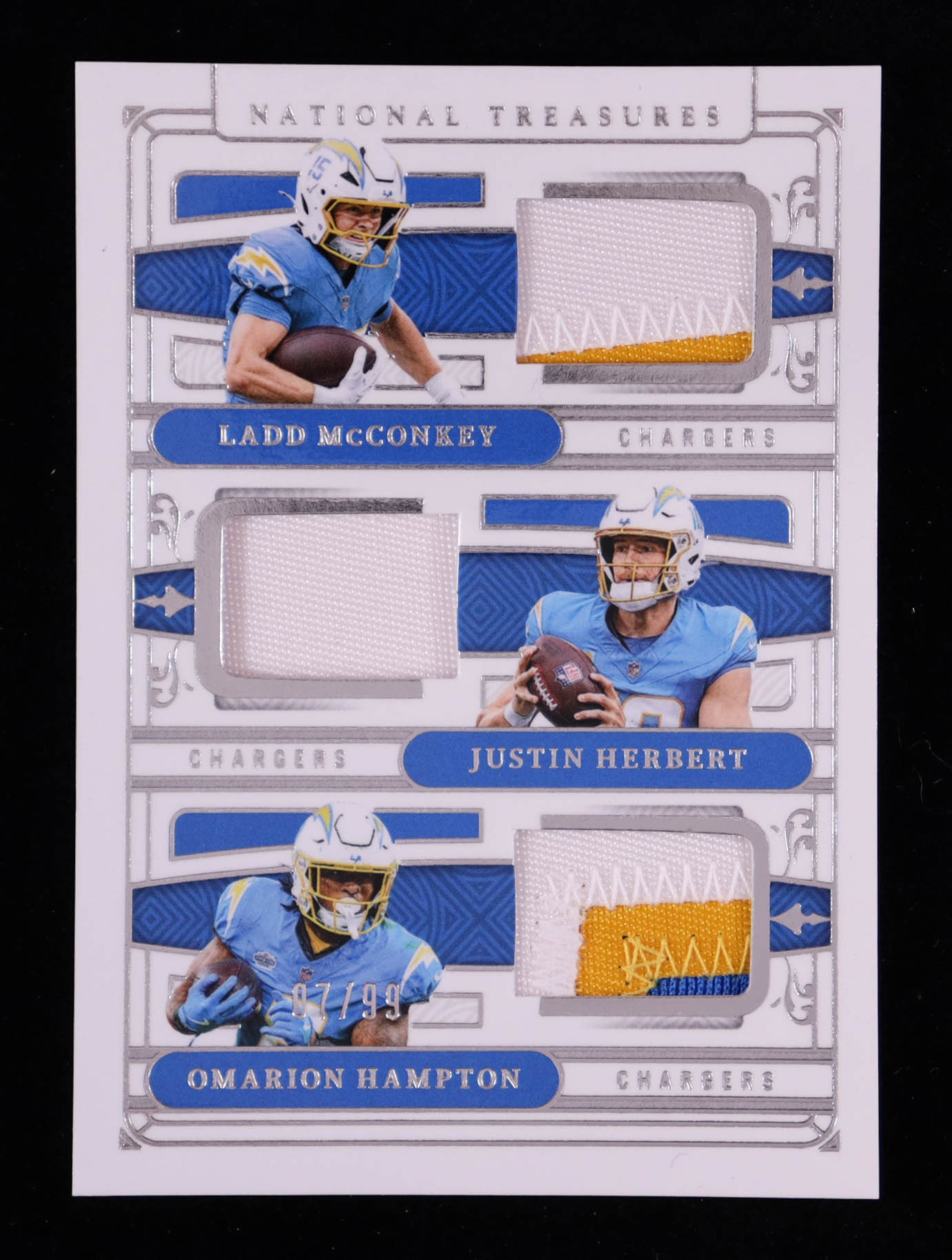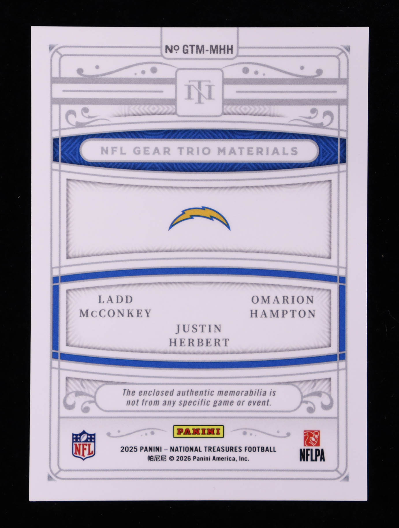 Ladd McConkey / Justin Herbert / Omarion Hampton RC 2025 Panini National Treasures NFL Gear Trio Materials #12 #07/99
