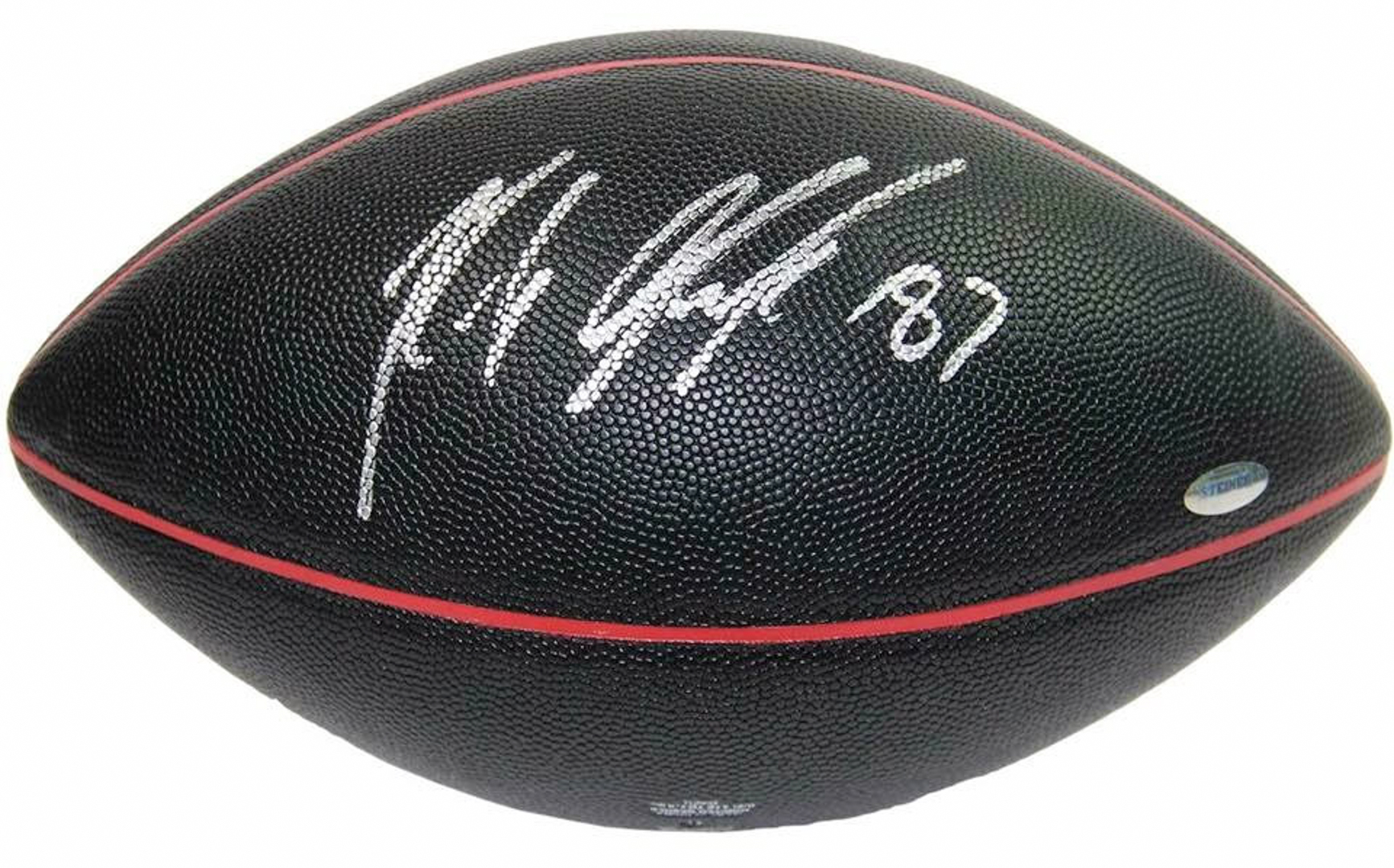 New England Patriots logo football. Hand-signed in silver paint pen by Rob Gronkowski.