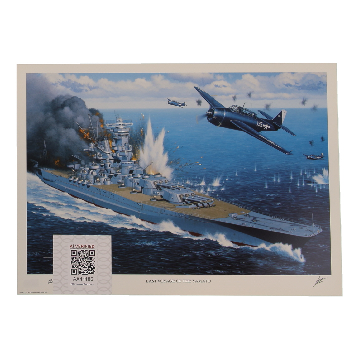 William Webb Patterson Signed Stan Stokes "Last Voyage Of The Yamato" Lithograph Inscribed "LT (JG) USNR VT-9" (AIV)