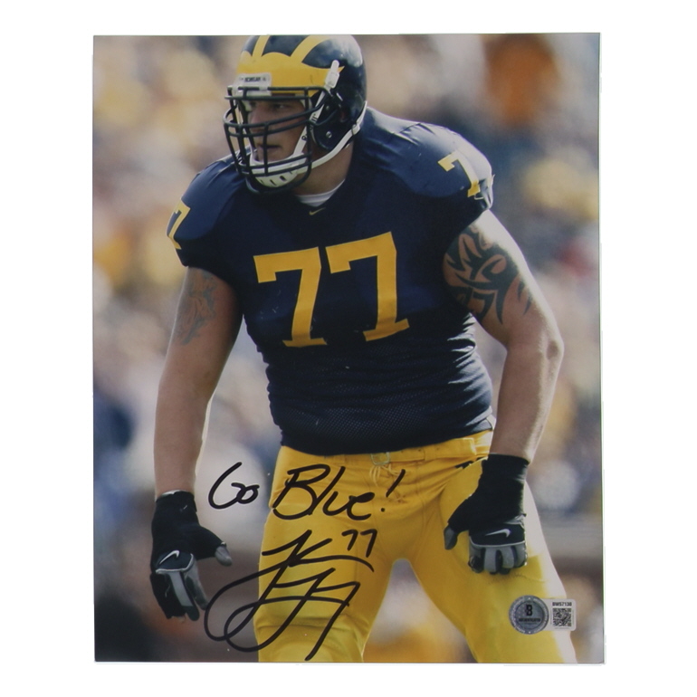 Jake Long Signed Michigan Wolverines 8x10 Photo Inscribed "Go Blue!" (Beckett)