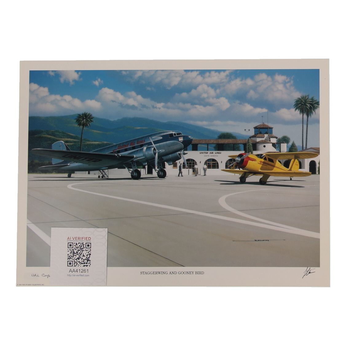 Carl E. Recknagel Signed Stan Stokes "Staggerwing And Gooney Bird" Lithograph Inscribed "UAL Captain" (AIV)