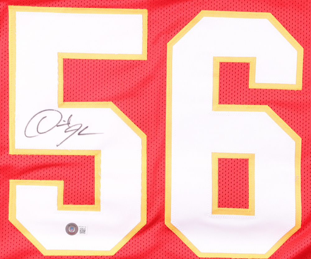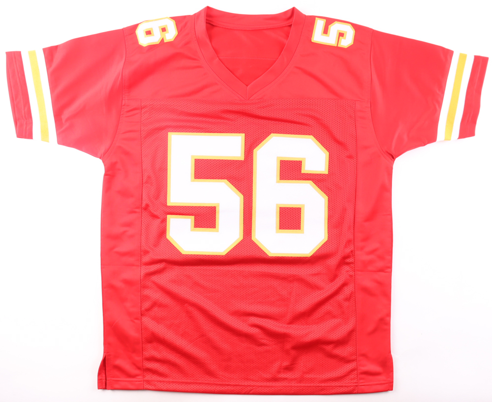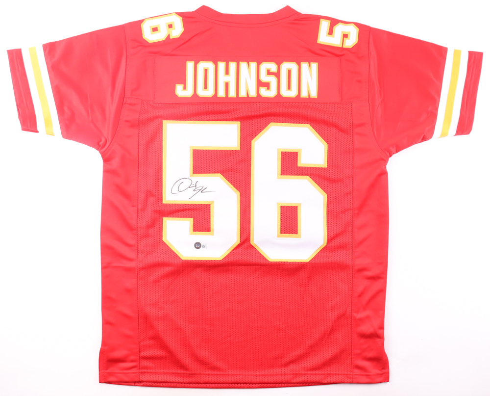 Custom jersey. Everything sewn on, size XL. Hand-signed by Derrick Johnson.