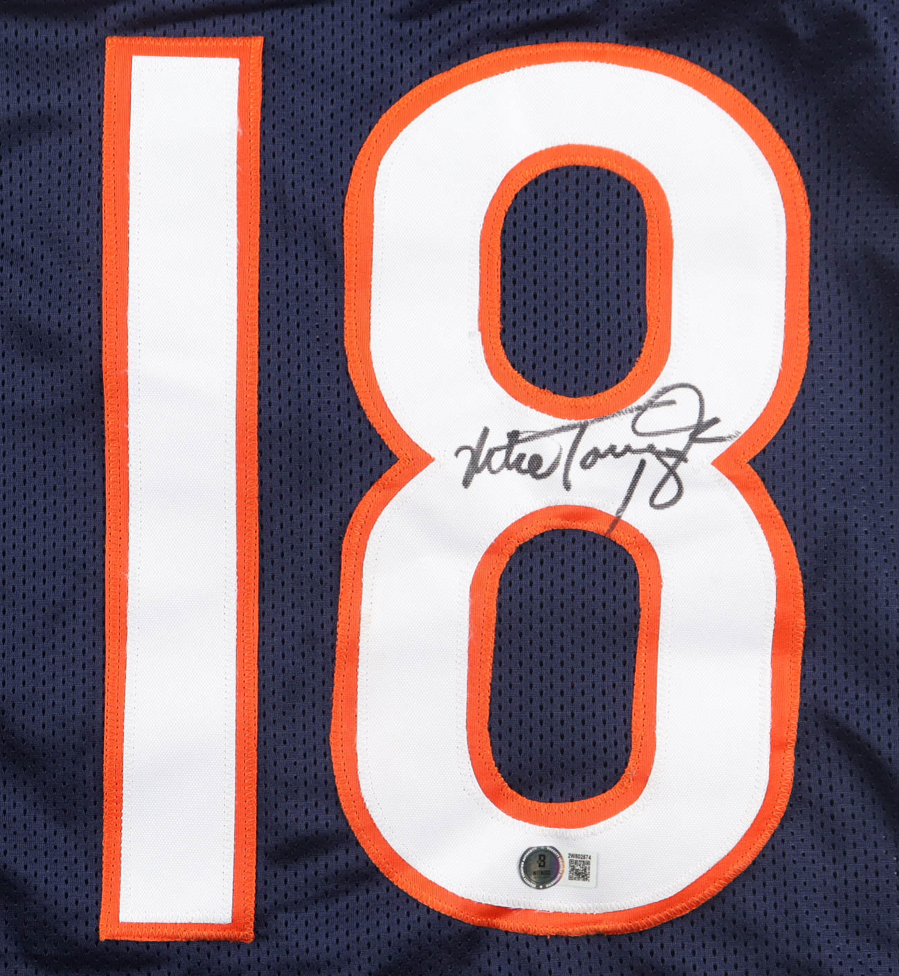 Custom jersey with everything sewn on, size XL. Hand-signed by Mike Tomczak.