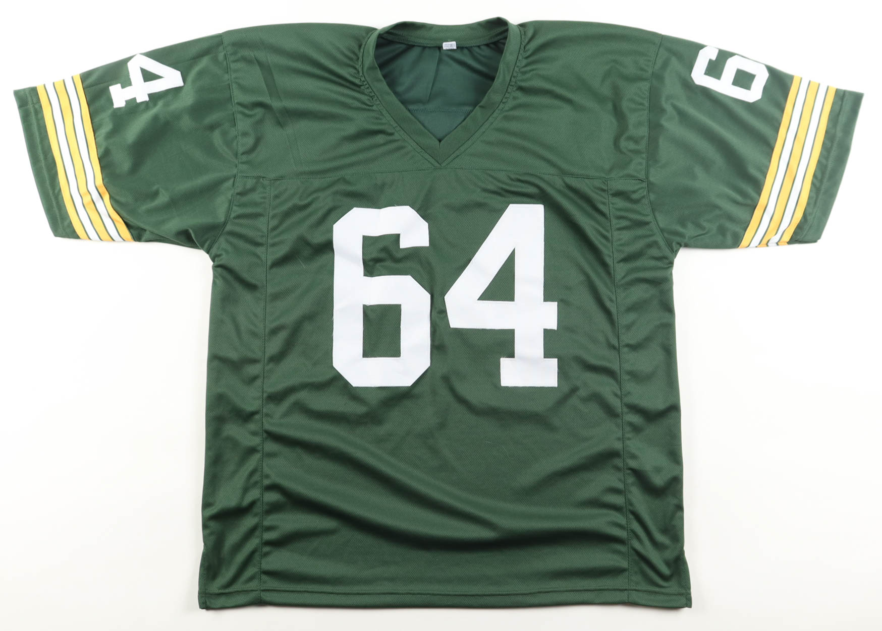 Custom jersey. Everything is sewn on, size XL. Hand-signed and inscribed by Jerry Kramer (HOF). Please note, the signature and inscription have bled.