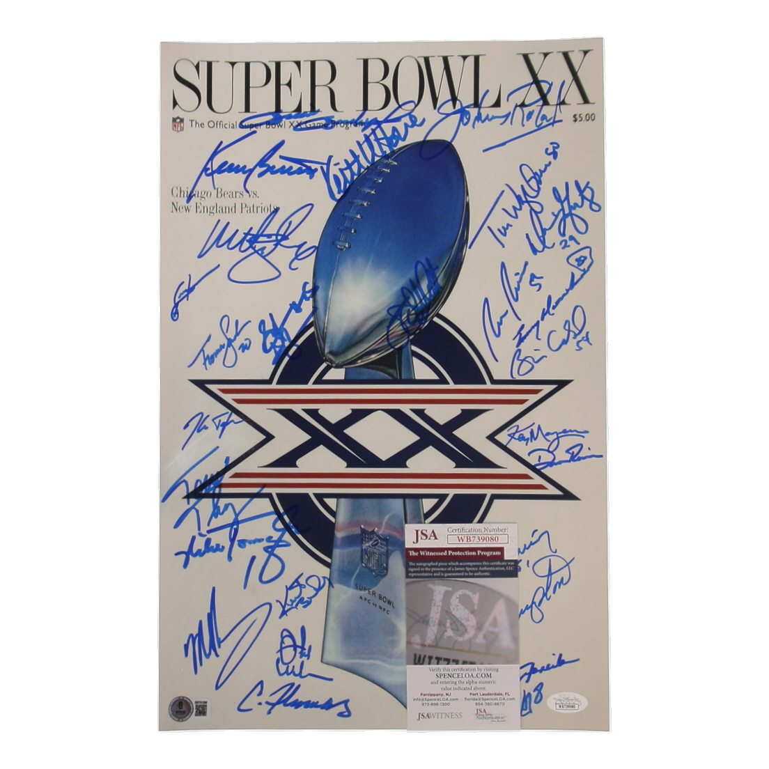 1985 Bears Super Bowl XX 11x17 Photo Team-Signed By (23) with Dan Hampton, Mike Singletary, Tom Thayer, Matt Suhey (Beckett & JSA)