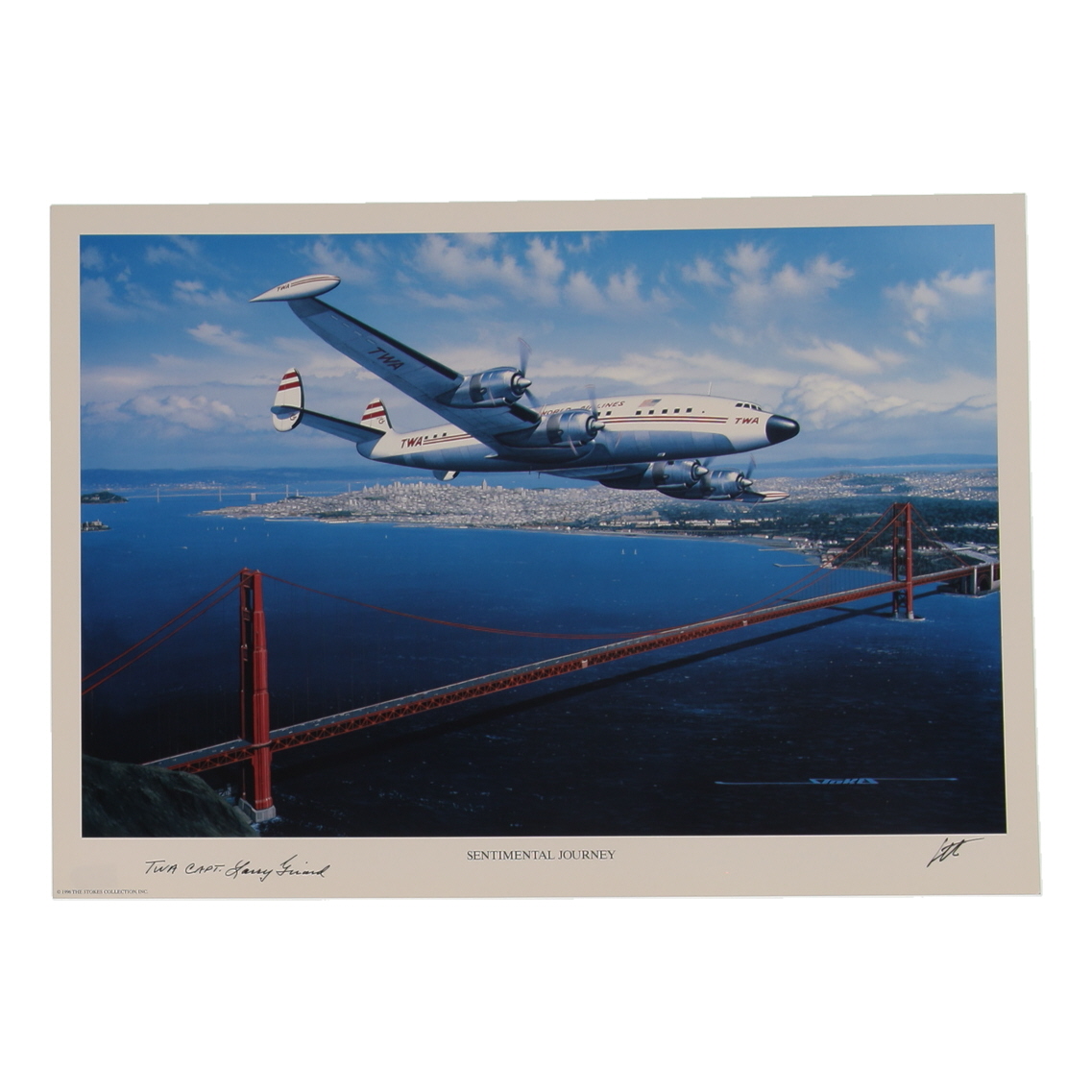 Larry Girard Signed Stan Stokes "Sentimental Journey" Lithograph Inscribed "TWA CAPT." (AIV)