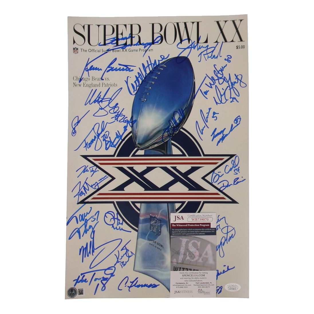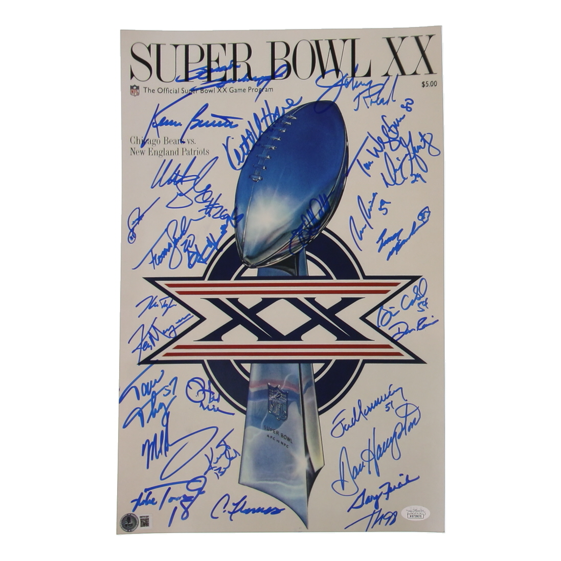 1985 Bears Super Bowl XX 11x17 Photo Team-Signed By (23) with Dan Hampton, Mike Singletary, Tom Thayer, Matt Suhey (Beckett & JSA)