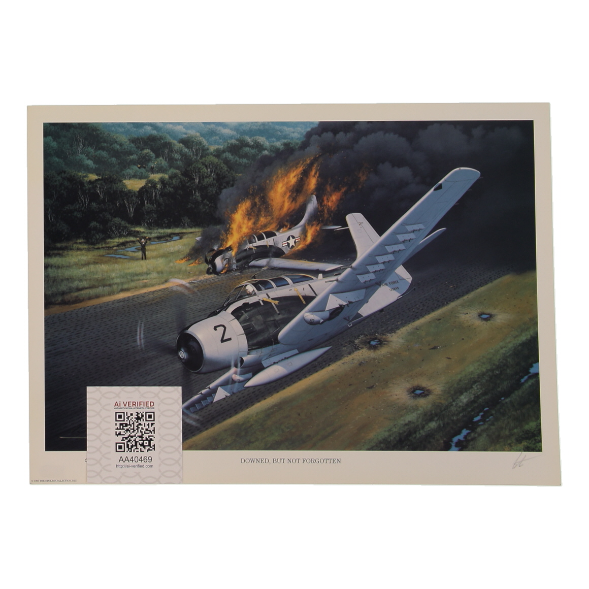 Col. Bernard Fisher Signed Stan Stokes "Downed, But Not Forgotten" Lithograph Inscribed "CMOH" (AIV)
