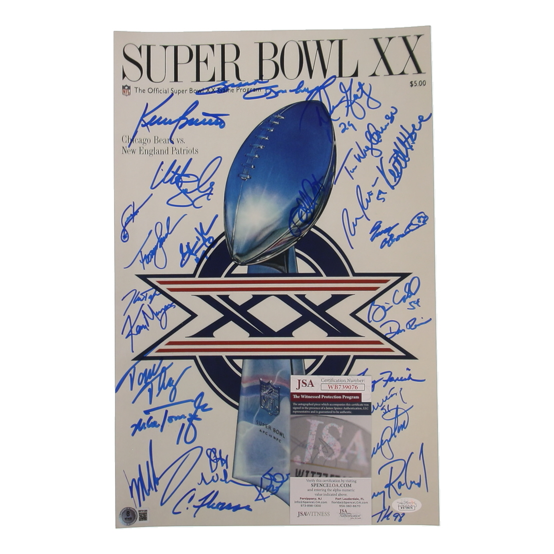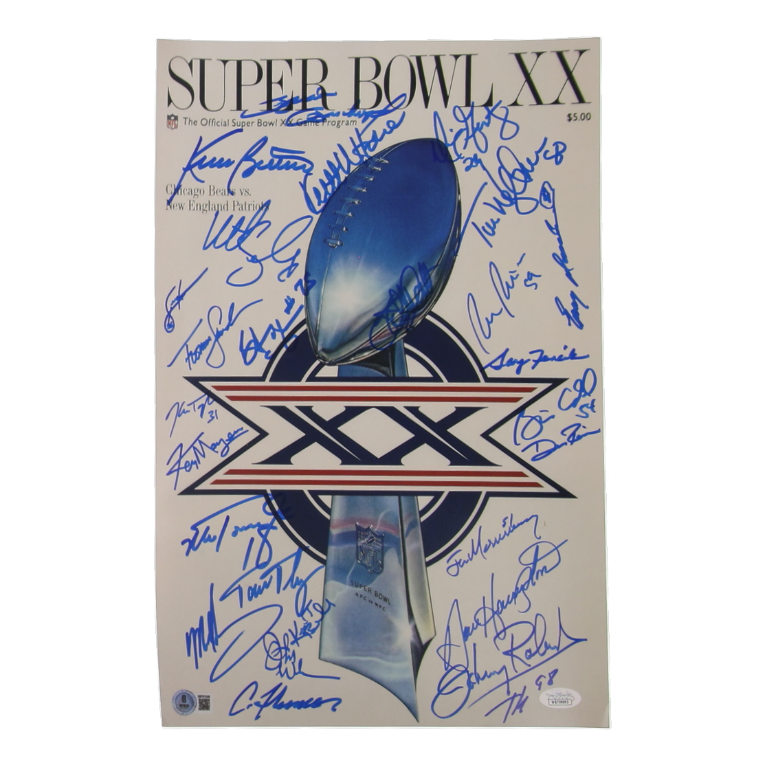 1985 Bears Super Bowl XX 11x17 Photo Team-Signed By (23) with Dan Hampton, Mike Singletary, Tom Thayer, Matt Suhey (Beckett & JSA)
