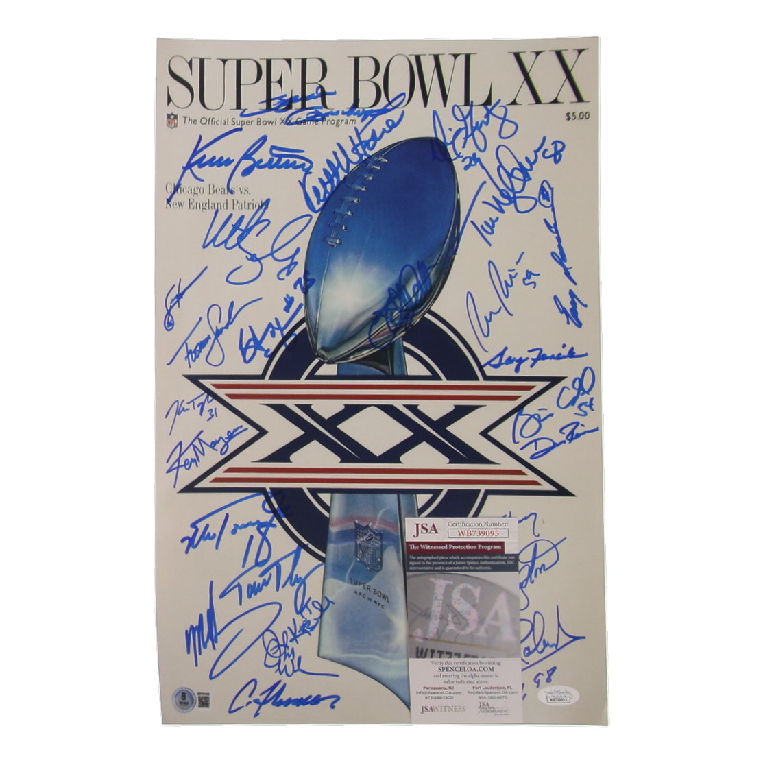1985 Bears Super Bowl XX 11x17 Photo Team-Signed By (23) with Dan Hampton, Mike Singletary, Tom Thayer, Matt Suhey (Beckett & JSA)