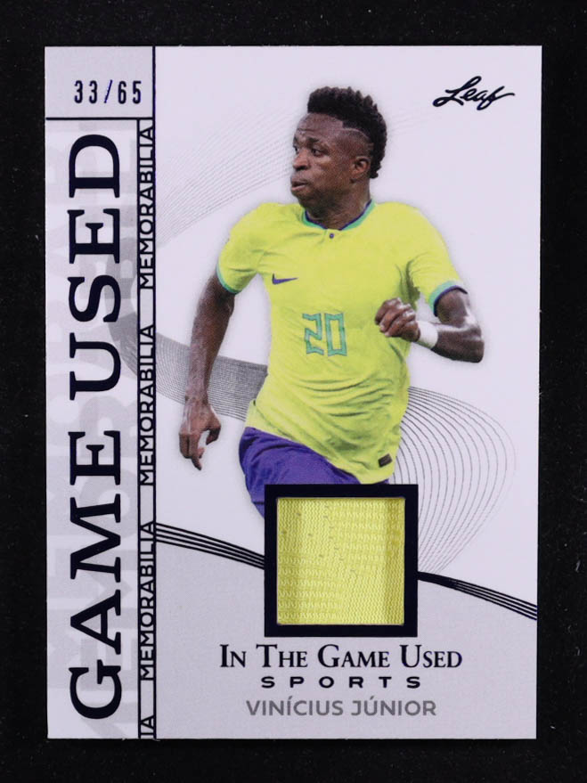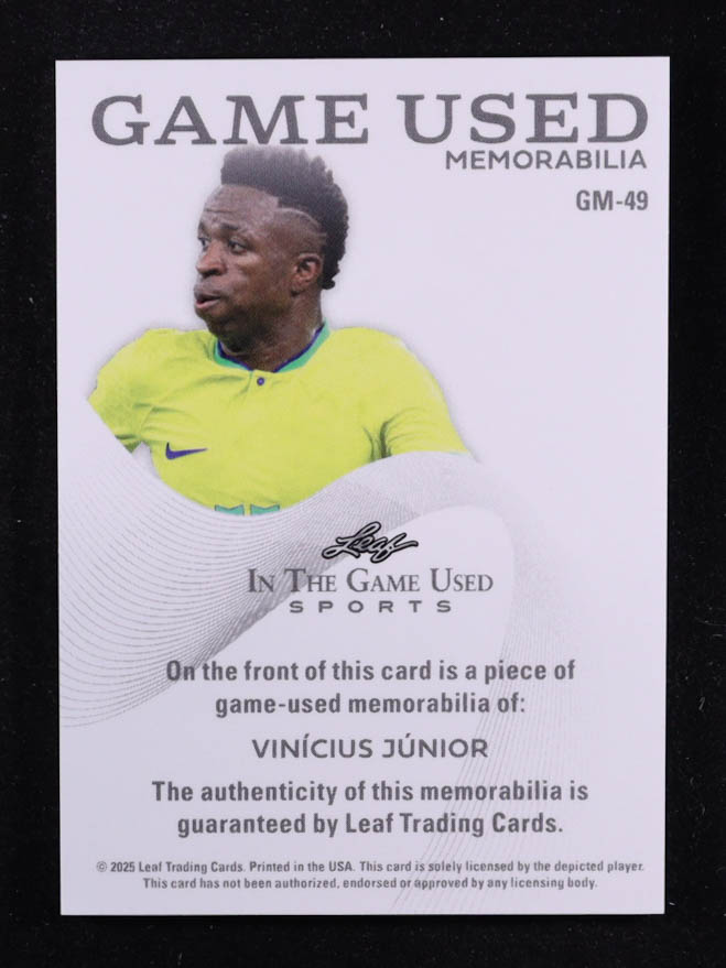 Vinicius Junior 2025 Leaf ITG Used Sports Game Used Memorabilia Blue Foil JSY #GM49 #33/65