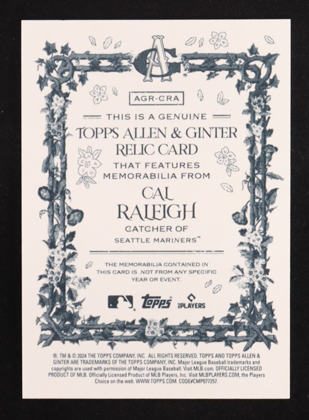 Cal Raleigh 2024 Topps Allen and Ginter Relics #AGRCRA