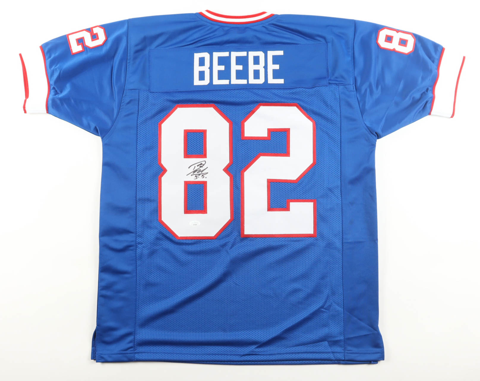 Custom jersey with everything sewn on, size XL. Hand-signed by Don Beebe.