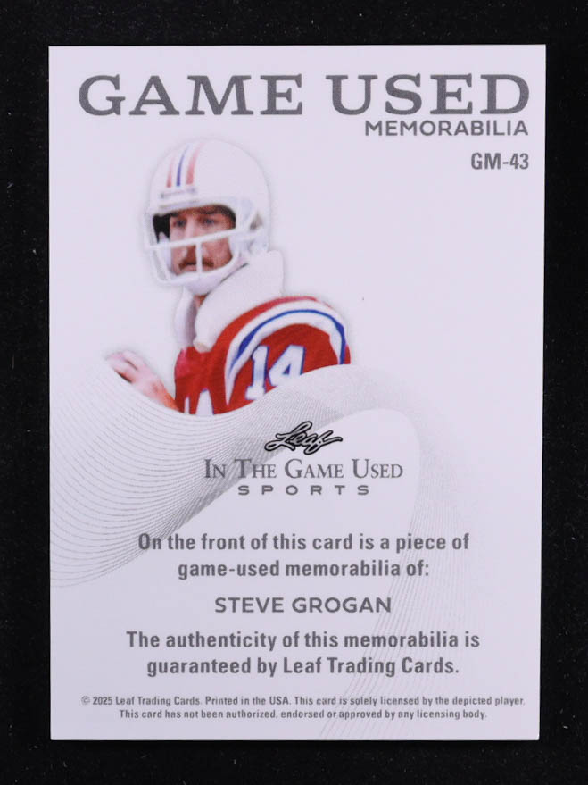 Steve Grogan 2025 Leaf ITG Used Sports Game Used Memorabilia Emerald Foil JSY #GM43 #4/4