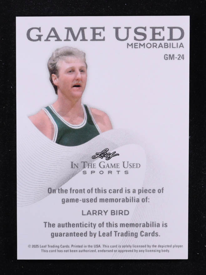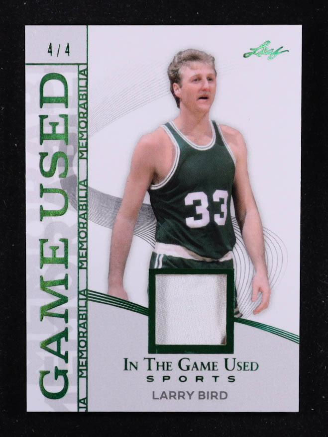 Larry Bird 2025 Leaf ITG Used Sports Game Used Memorabilia Emerald Foil JSY #GM24 #4/4