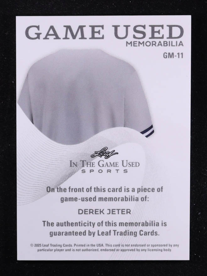 Derek Jeter 2025 Leaf ITG Used Sports Game Used Memorabilia Blue Foil JSY #GM11 #35/65