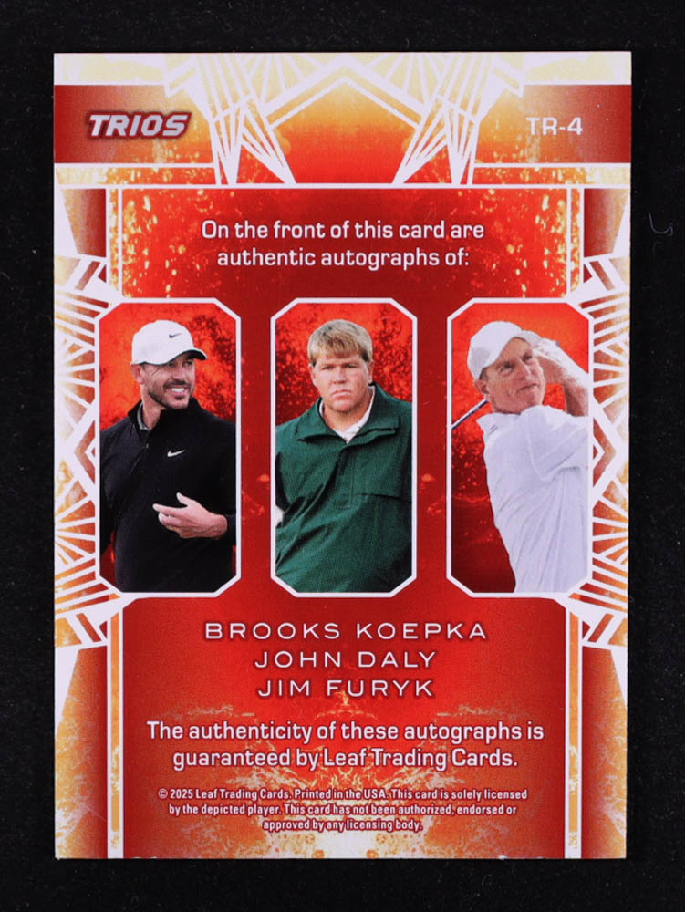 Brooks Koepka / John Daly / Jim Furyk 2025 Leaf Trinity Trios Autographs Green #TR-4 #1/1