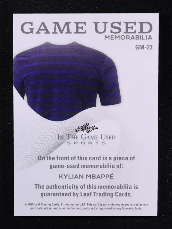 Kylian Mbappe 2025 Leaf ITG Used Sports Game Used Memorabilia Silver Sparkle Foil JSY #GM23 #13/25