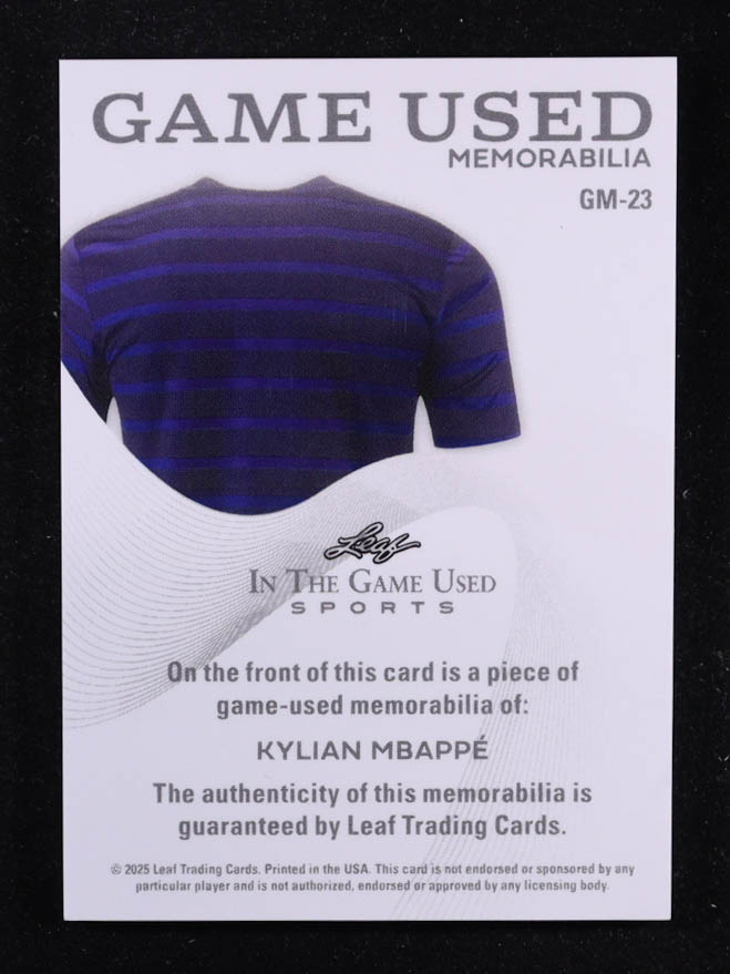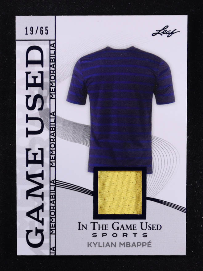 Kylian Mbappe 2025 Leaf ITG Used Sports Game Used Memorabilia Blue Foil JSY #GM23 #19/65