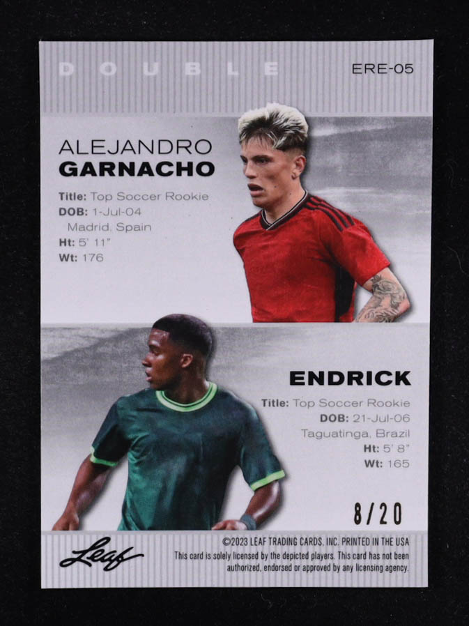 Alejandro Garnacho / Endrick 2023 Leaf Metal Special Release Exclusive Rookie Edition Prismatic Blue #ERE05 #8/20