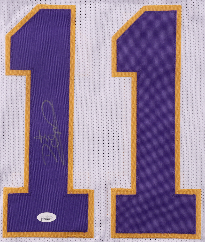 Custom jersey with everything sewn on, size XL. Hand-signed by Daunte Culpepper.