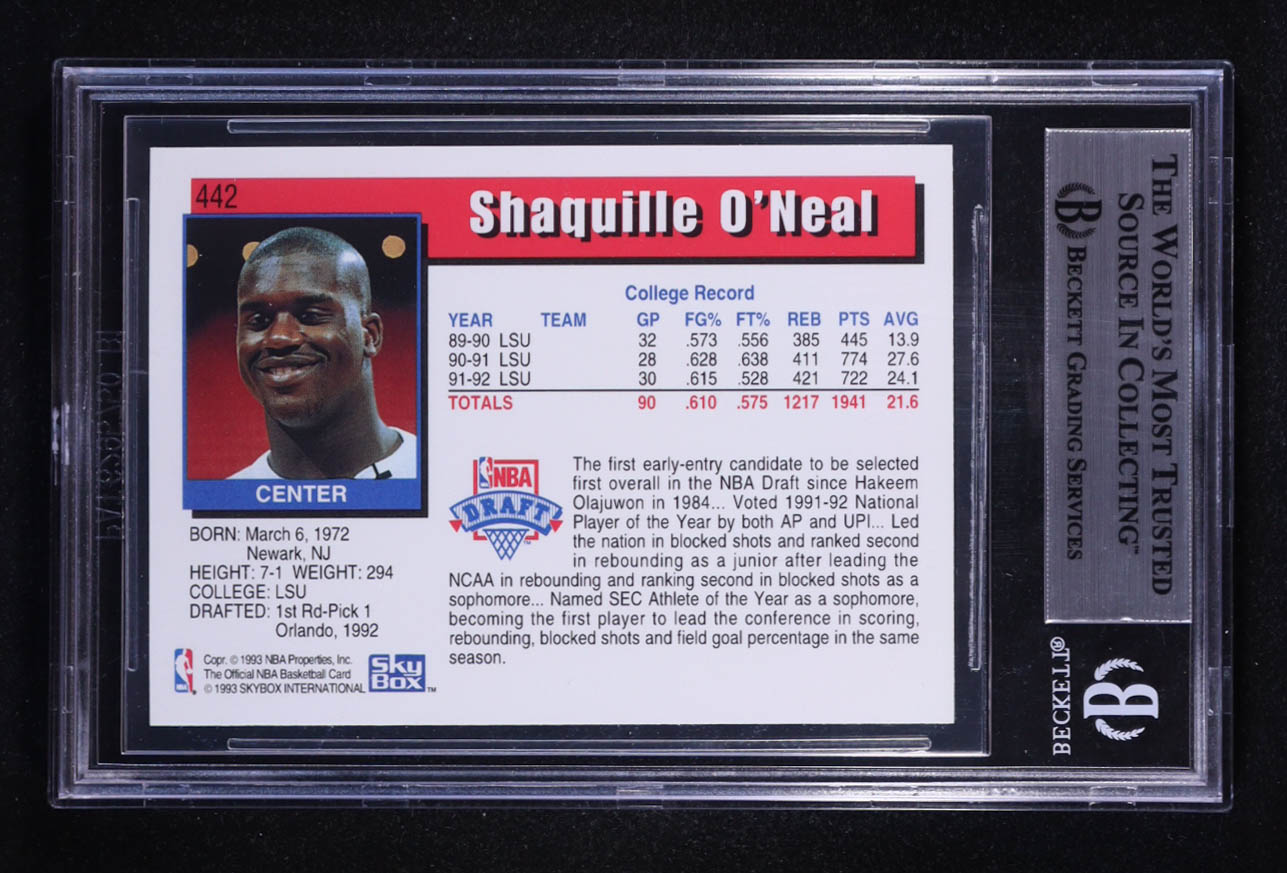 Shaquille O'Neal Signed 1992-93 NBA Hoops #442 RC (BGS)