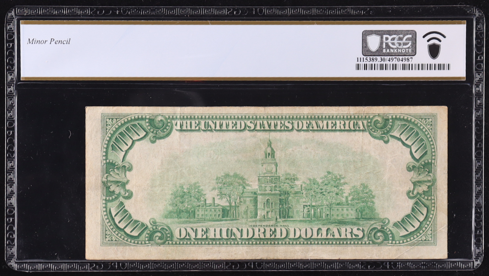 1934 U.S. $100 Federal Reserve Note, Dallas - Fr. 2152-K (KA Block) Signed: Julian / Morgenthau (PCGS Very Fine 30)