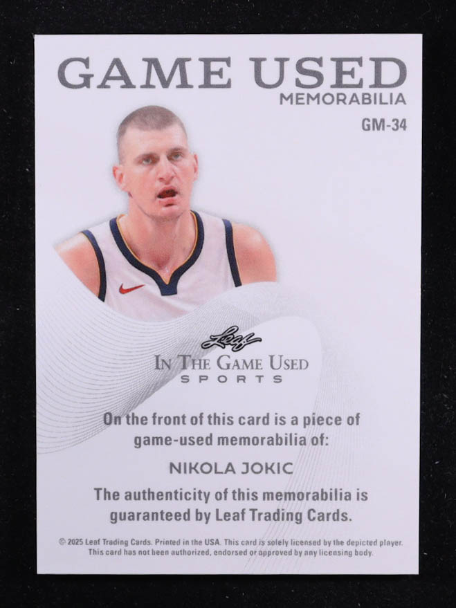 Nikola Jokic 2025 Leaf ITG Used Sports Game Used Memorabilia Turquoise Foil JSY #GM34 #4/15