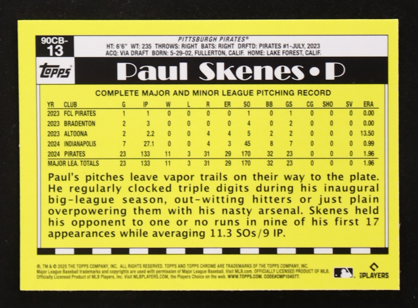 Paul Skenes 2025 Topps Chrome '90 Topps #90CB13