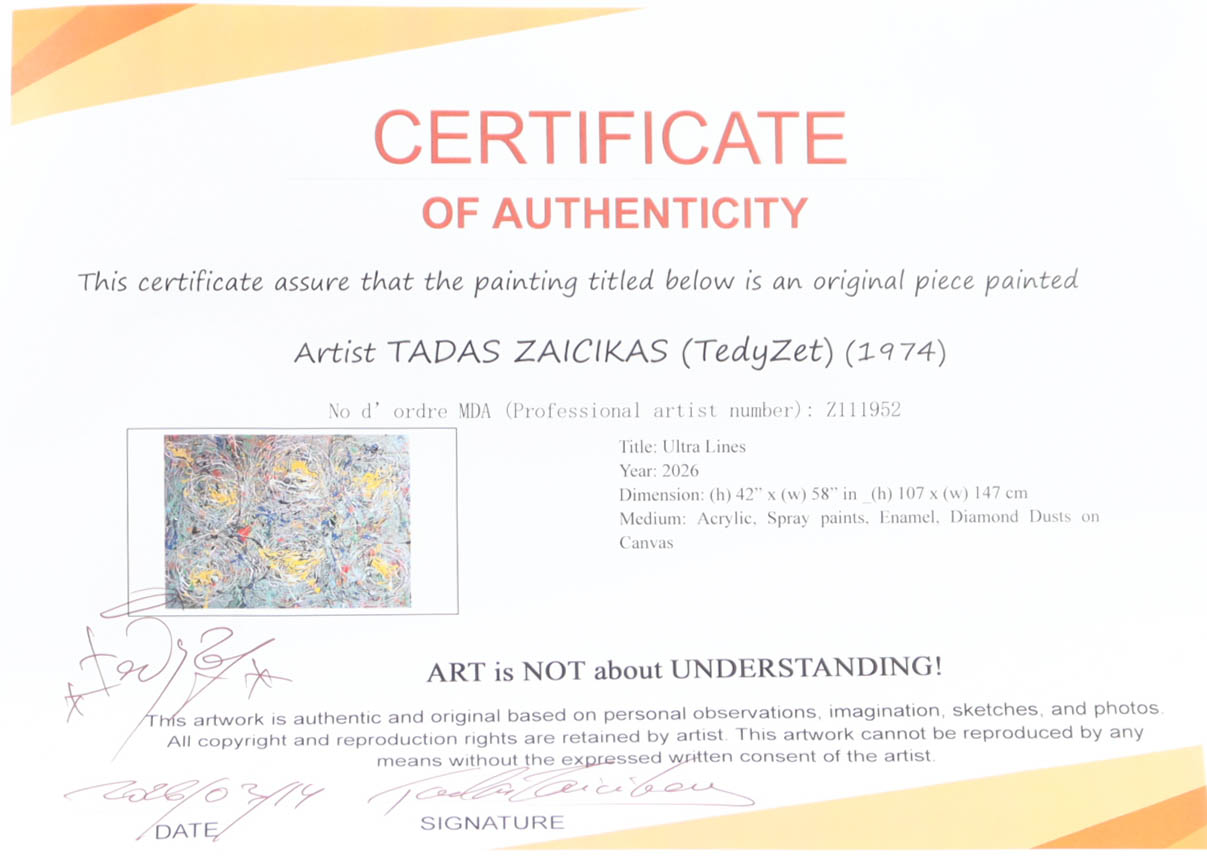 The piece includes an official Tadas Zaicikas COA for authenticity purposes.