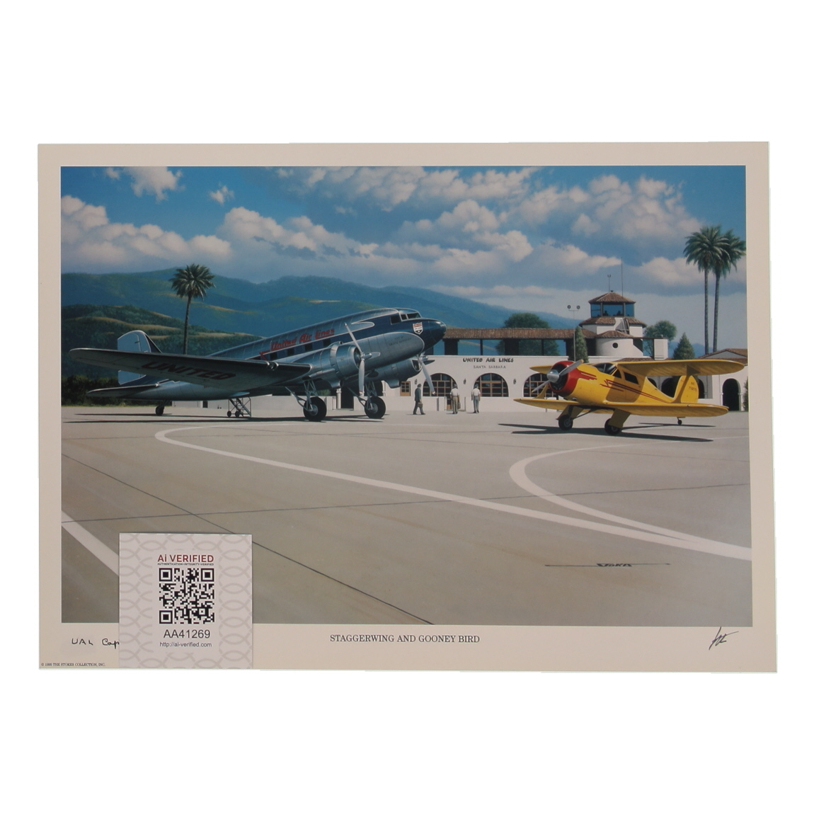 Carl E. Recknagel Signed Stan Stokes "Staggerwing And Gooney Bird" Lithograph Inscribed "UAL Captain" (AIV)