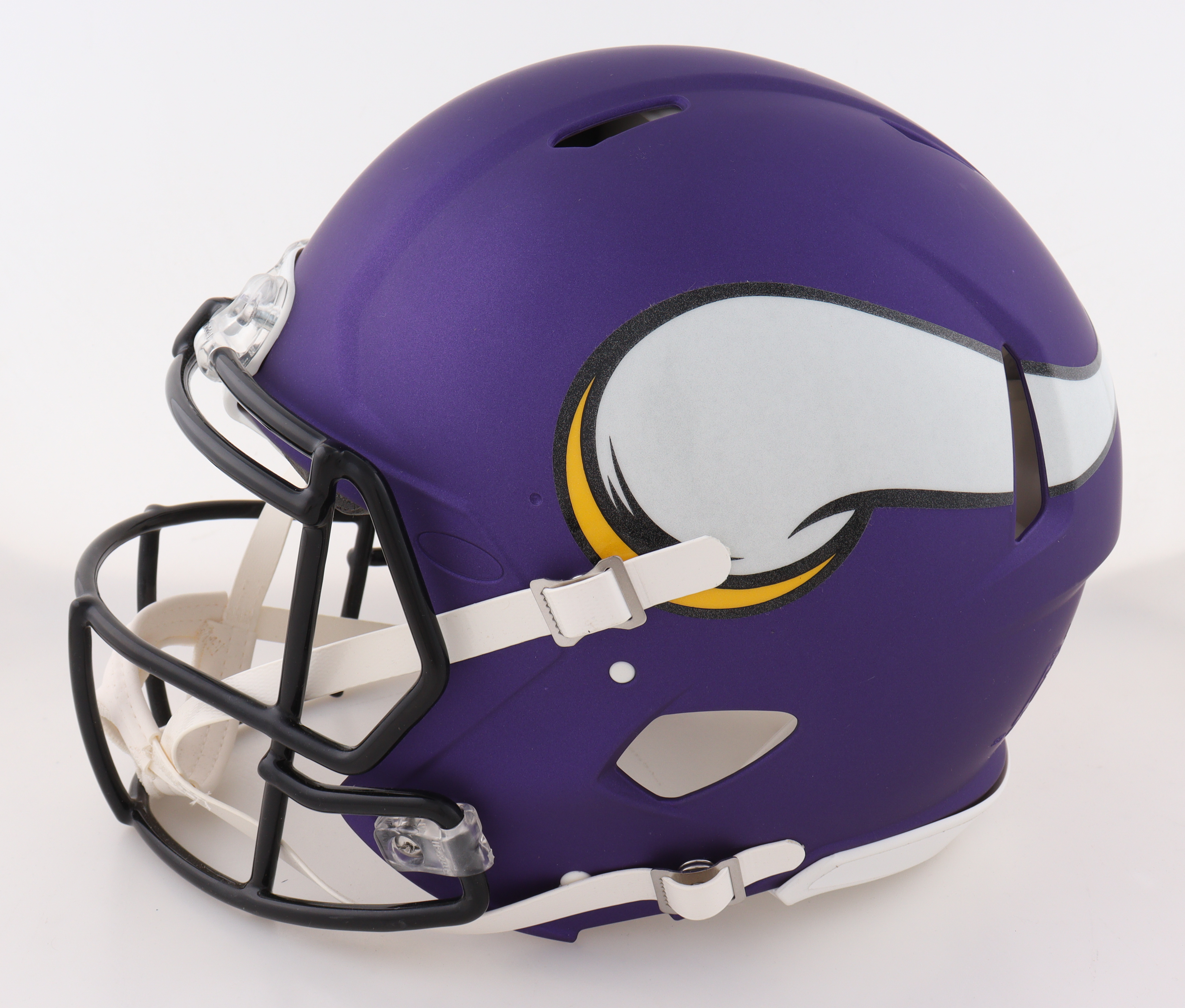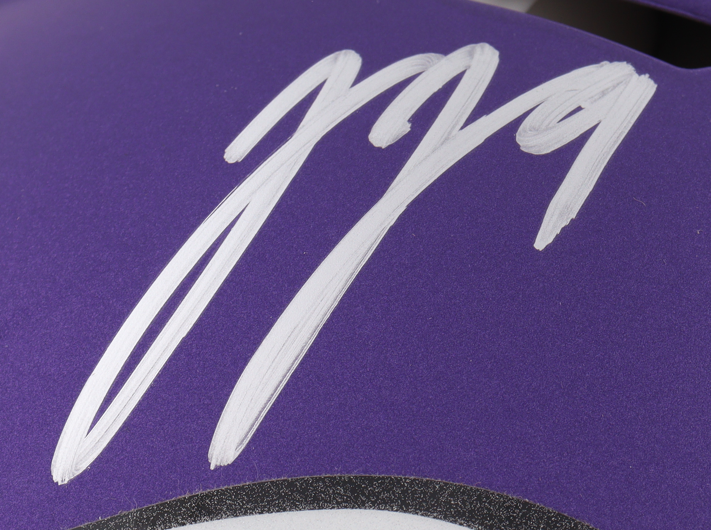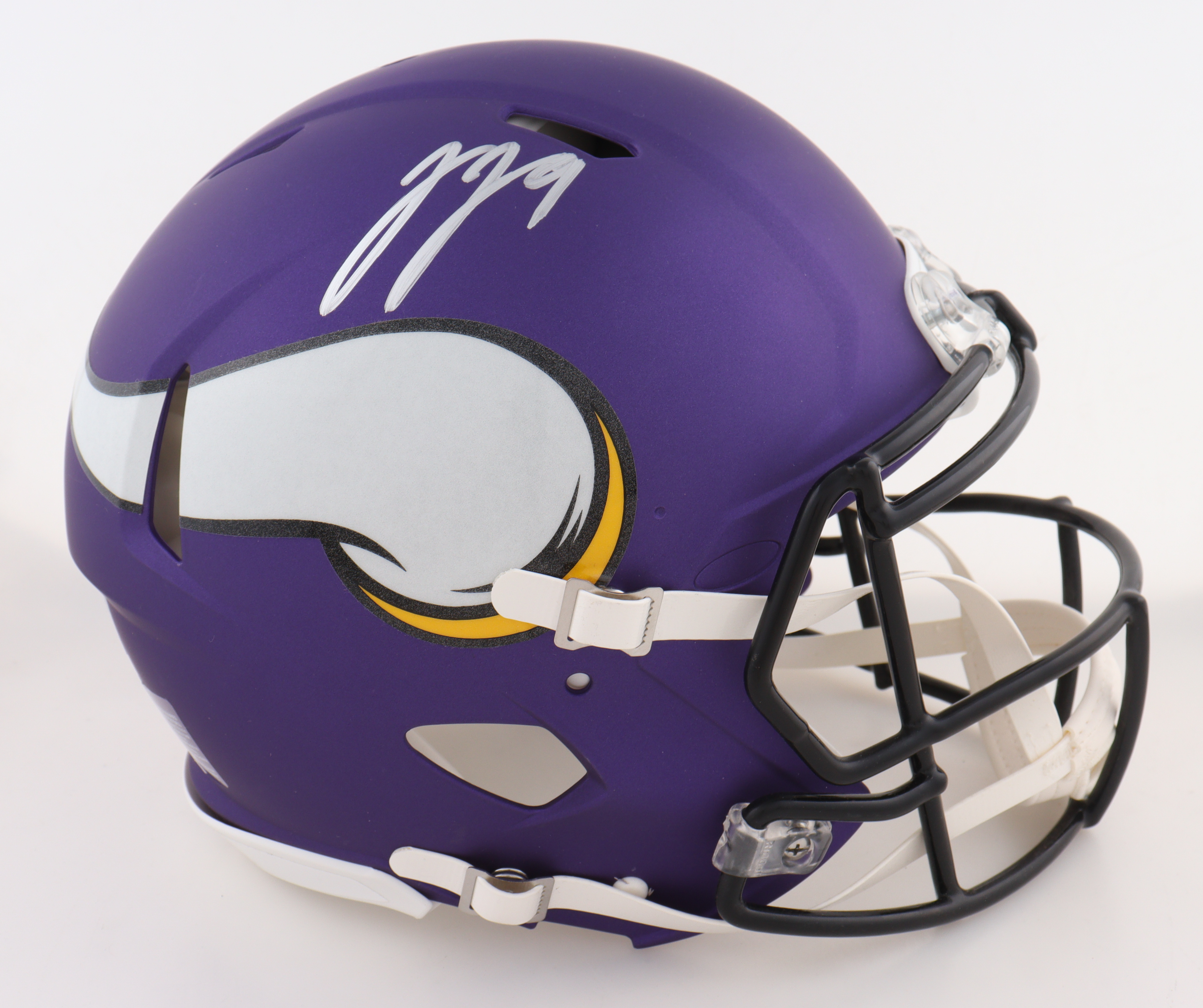 Riddell Minnesota Vikings full-size authentic on-field speed helmet. Hand-signed by JJ McCarthy.