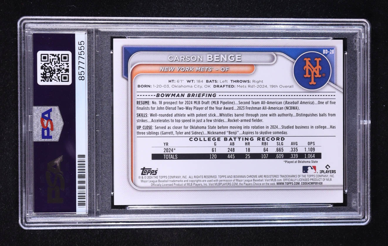 Carson Benge Signed 2024 Bowman Draft #BD-28 RC (PSA | Autograph Graded PSA 10)