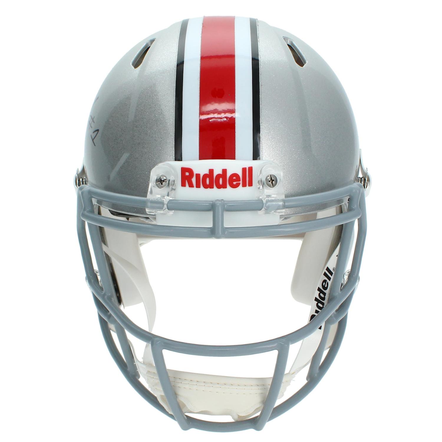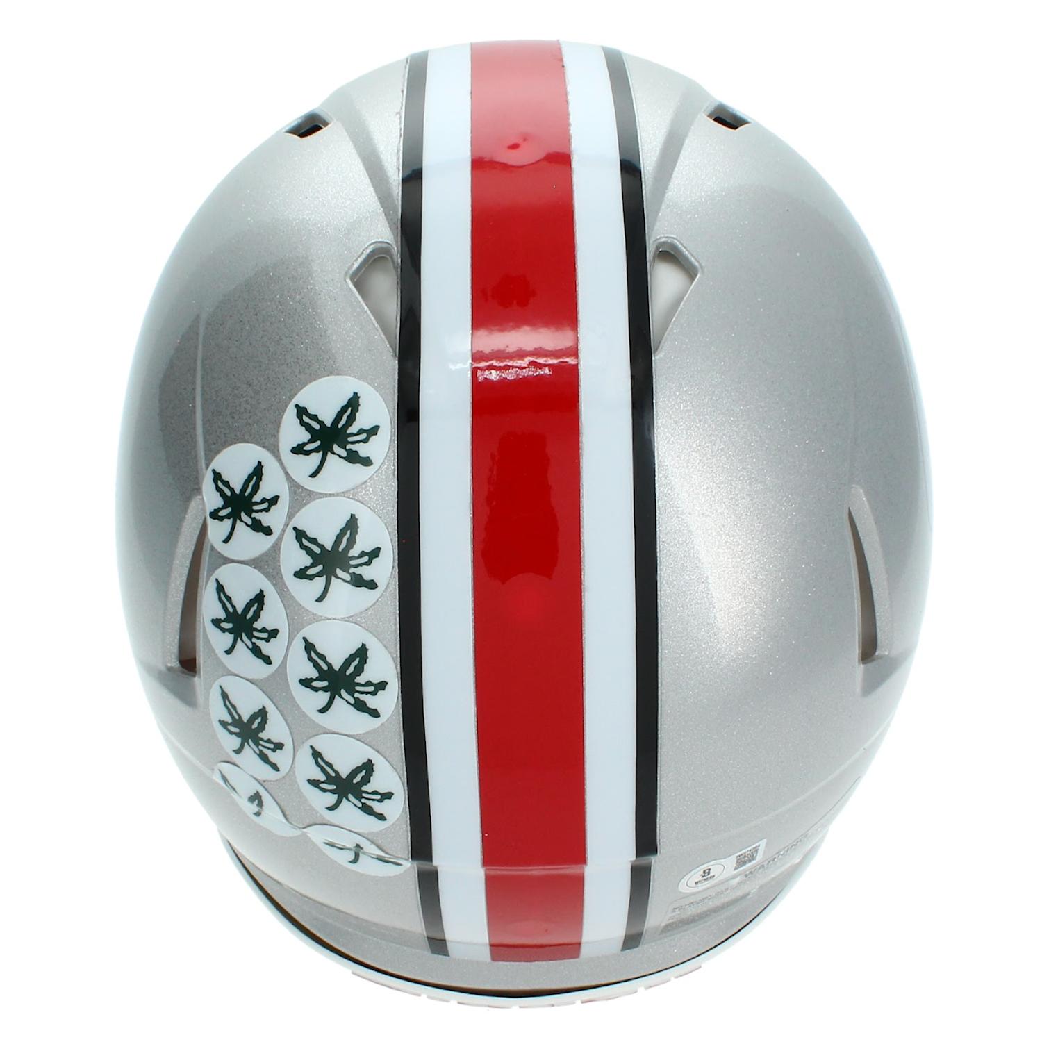 Riddell Ohio State Buckeyes full-size authentic on-field speedflex helmet has been hand-signed by Quinshon Judkins.
