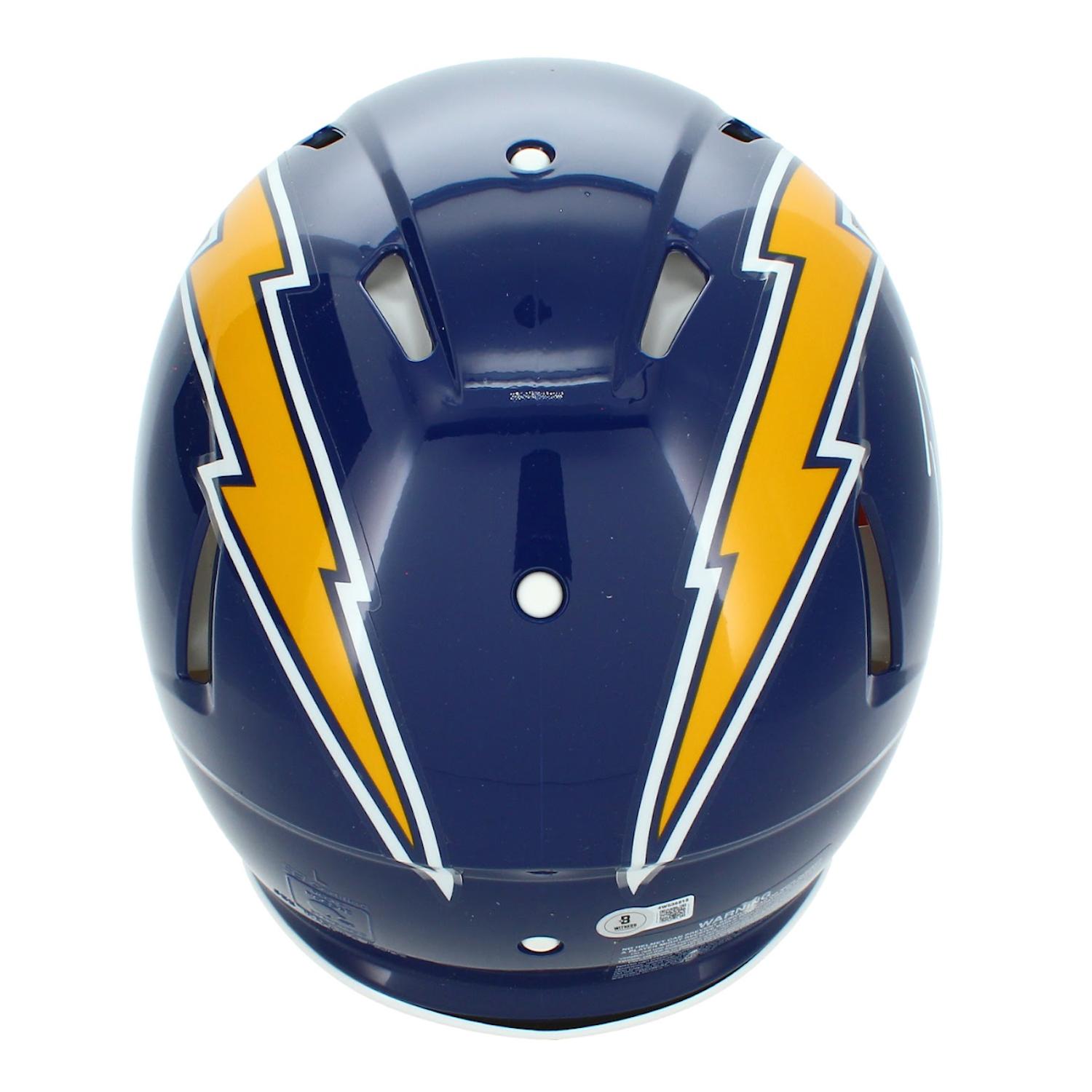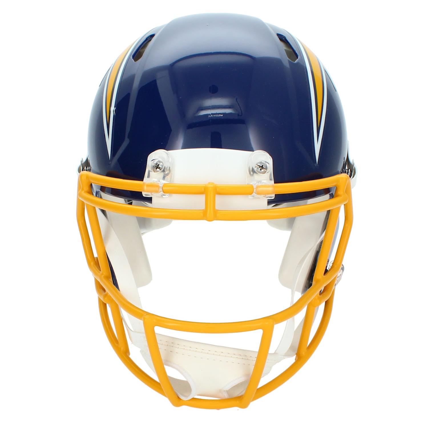 Riddell Los Angeles Chargers full-size authentic on-field throwback alternate speed helmet has been hand-signed by Omarion Hampton.