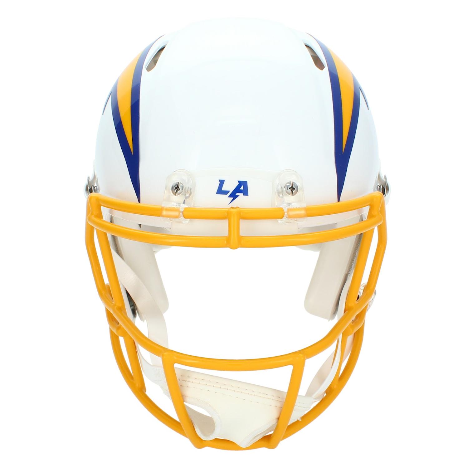 Riddell Los Angeles Chargers full-size authentic on-field alternate speed helmet has been hand-signed by Omarion Hampton.