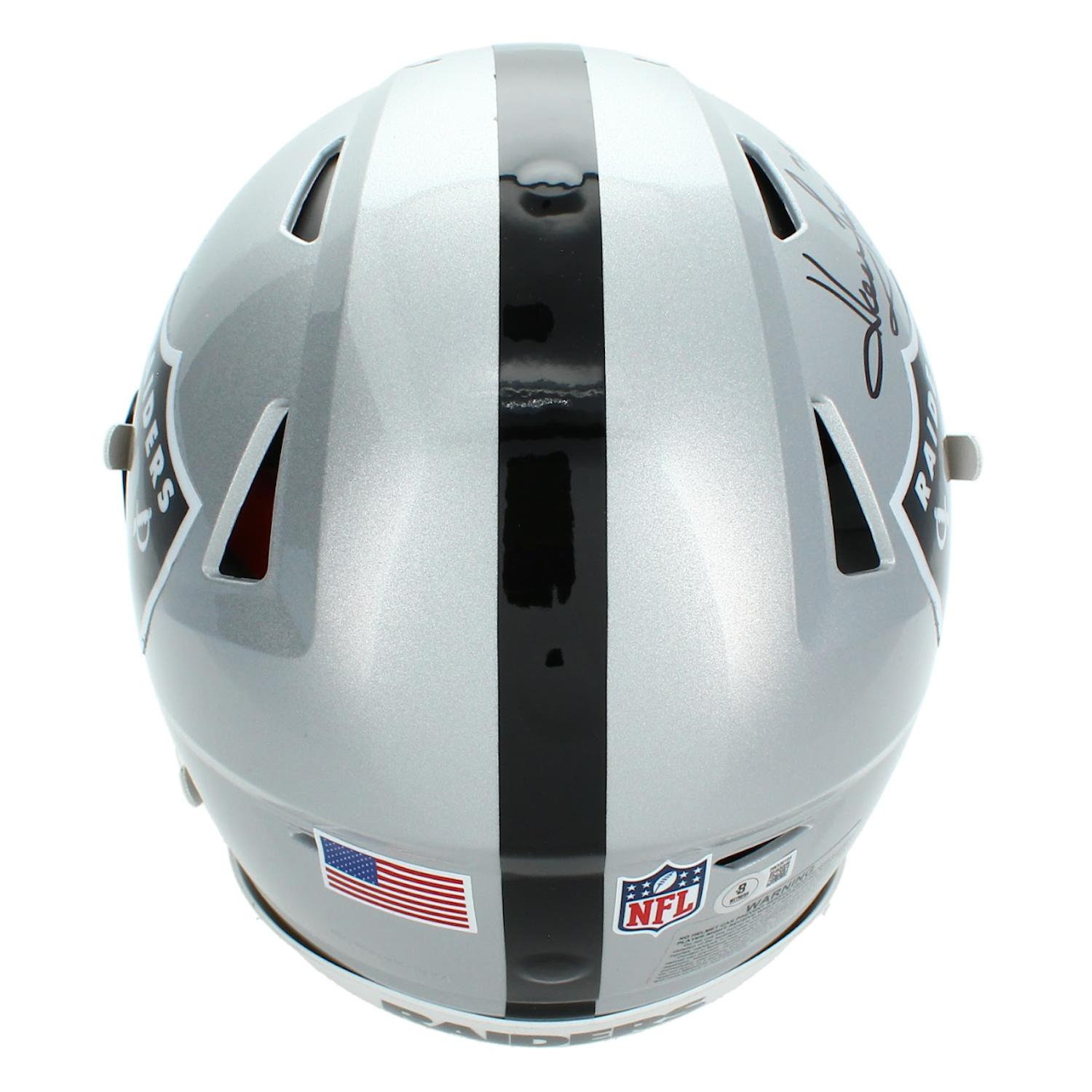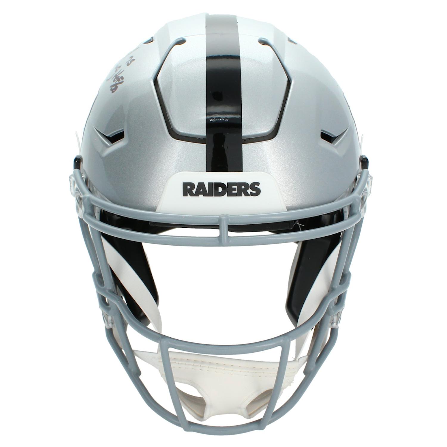 Riddell Oakland Raiders full-size authentic on-field speedflex helmet. Hand-signed and inscribed by Howie Long (HOF).